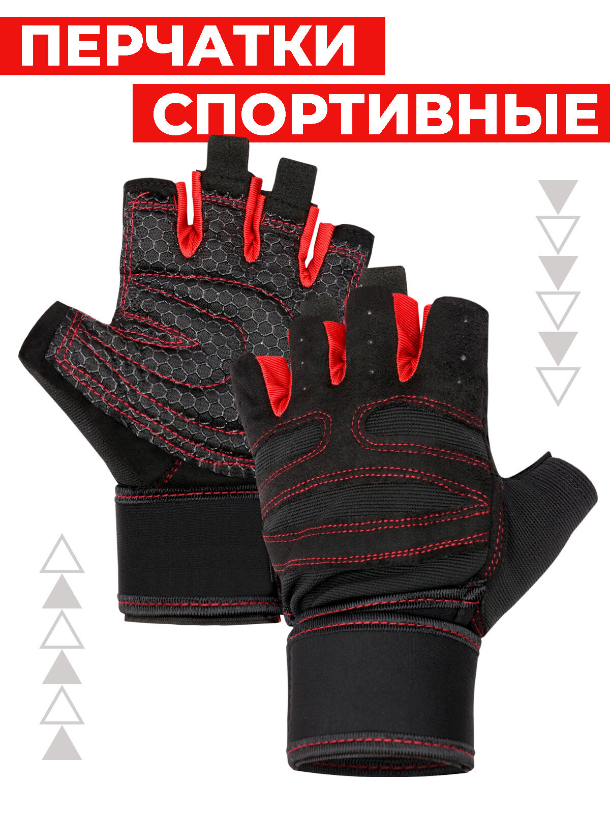 Купить Перчатки для фитнеса и легкой атлетики Boomshakalaka, цвет чёрно-красный, размер L, обхват ладони 200-220 мм.