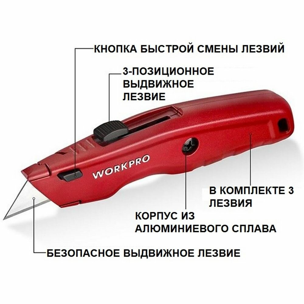 Купить Строительный нож WORKPRO алюминиевый, с выдвижным трапециевидным лезвием, 3 лезвия WP213017