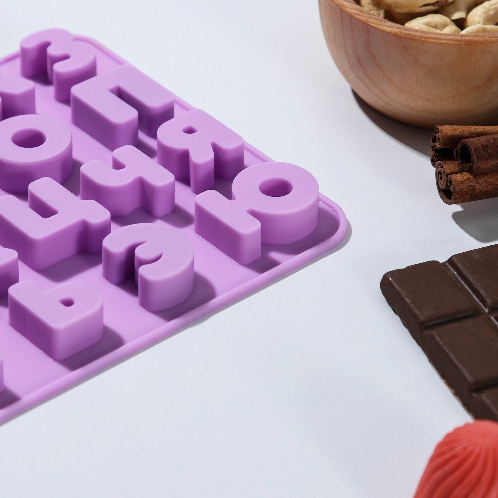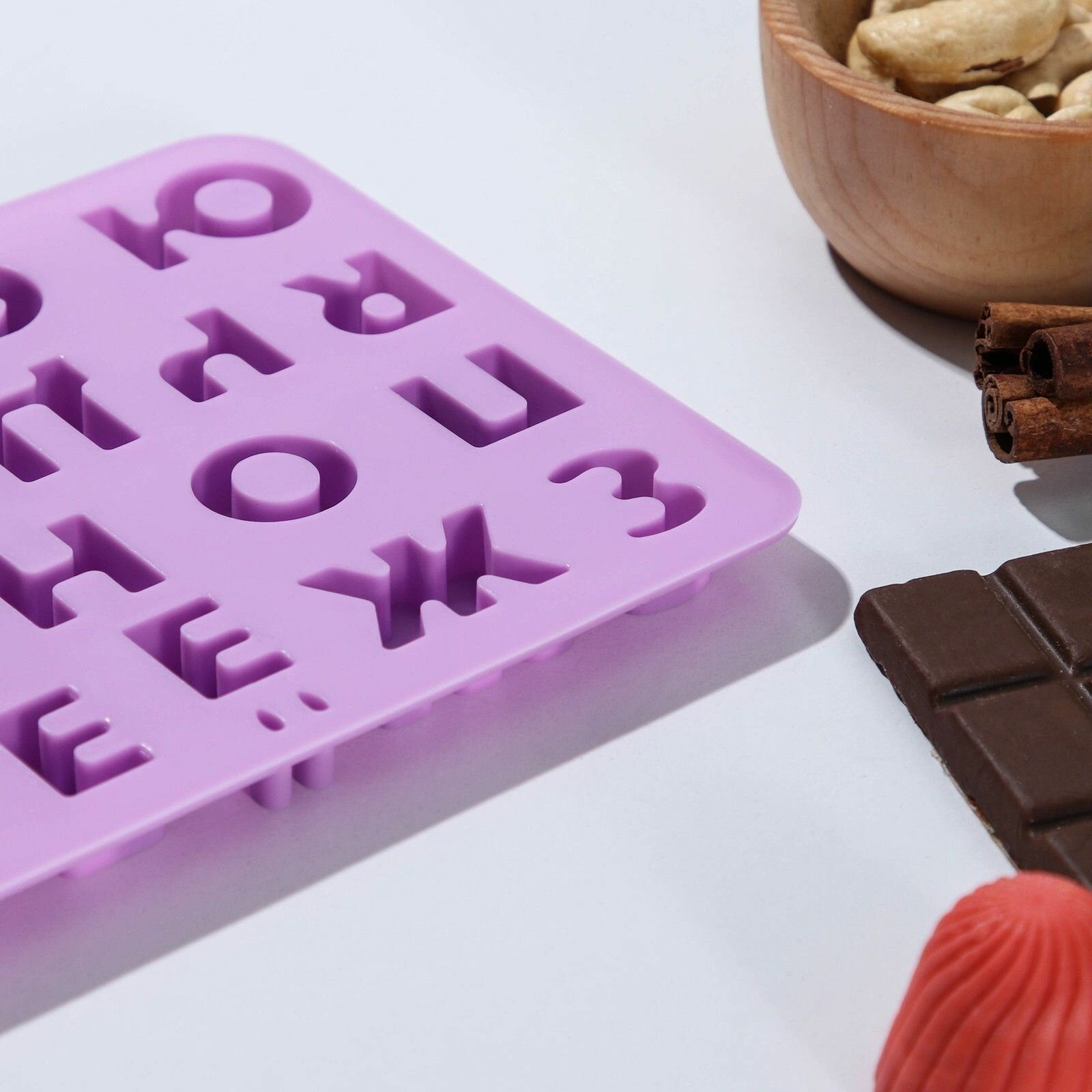 Купить Форма силиконовая для украшений «Буквы. Алфавит русский», 24,8×12×1,5 см, 33 ячейки, цвет сиреневый