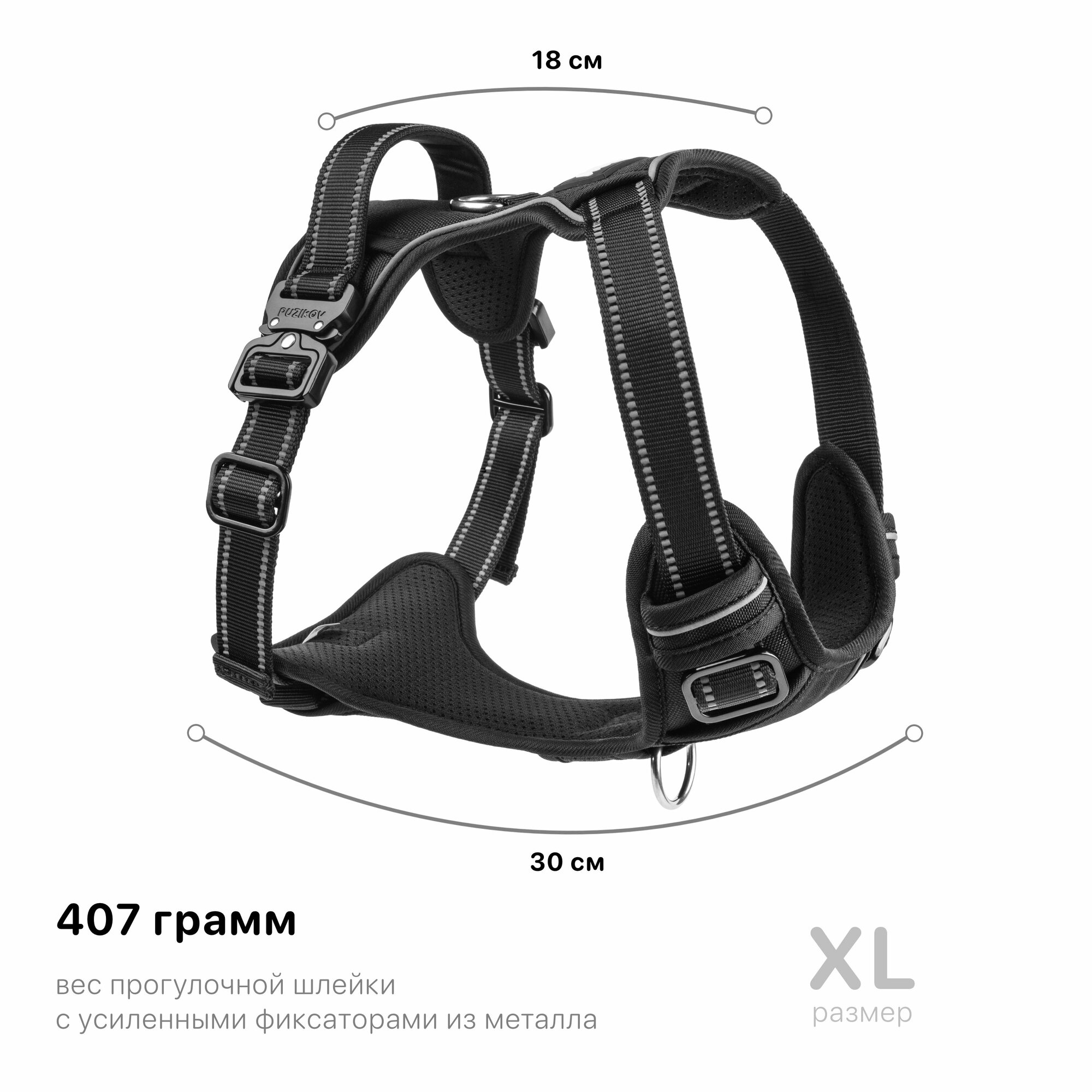 Шлейка для собак с фиксаторами из металла и мягкой ручкой, размер XL, черный