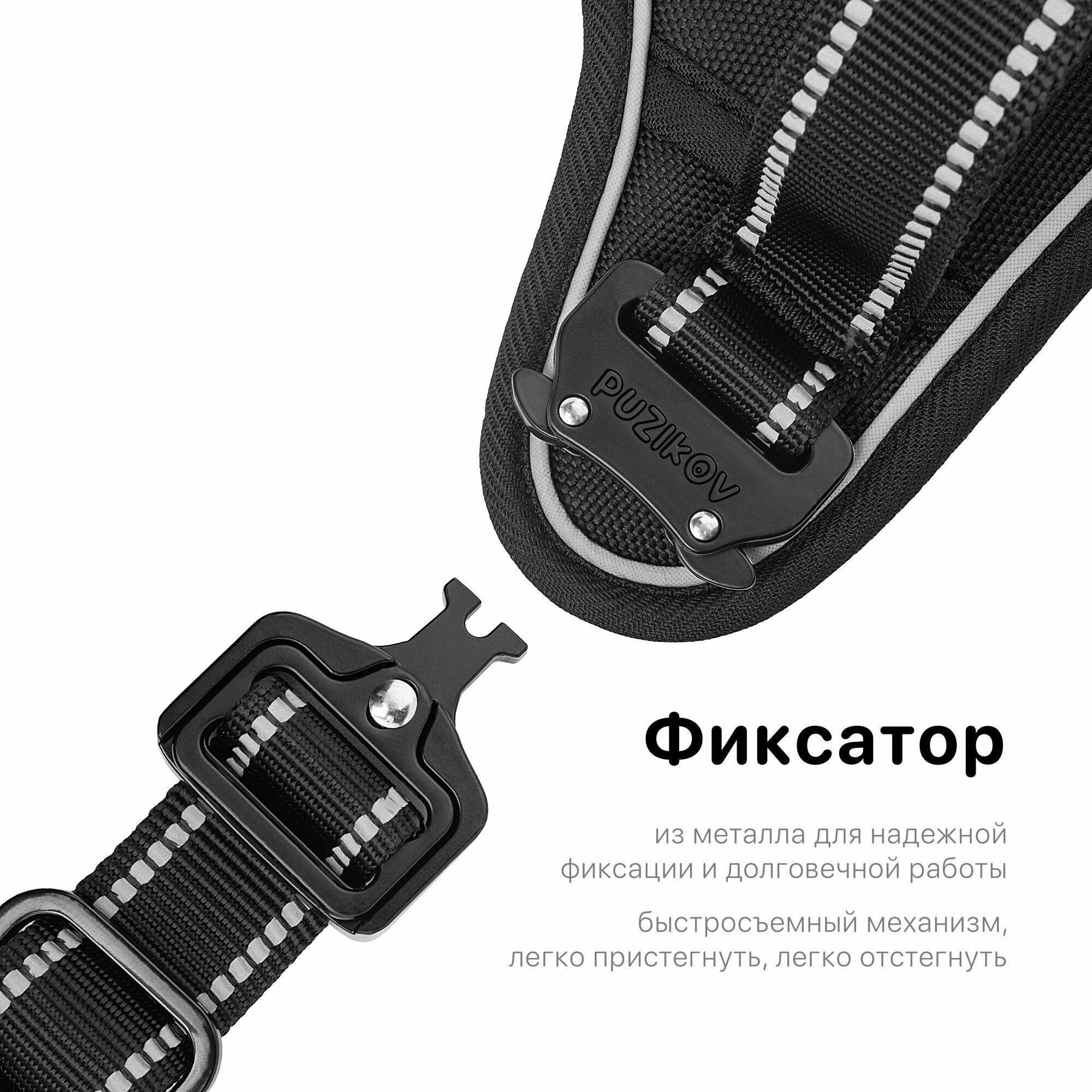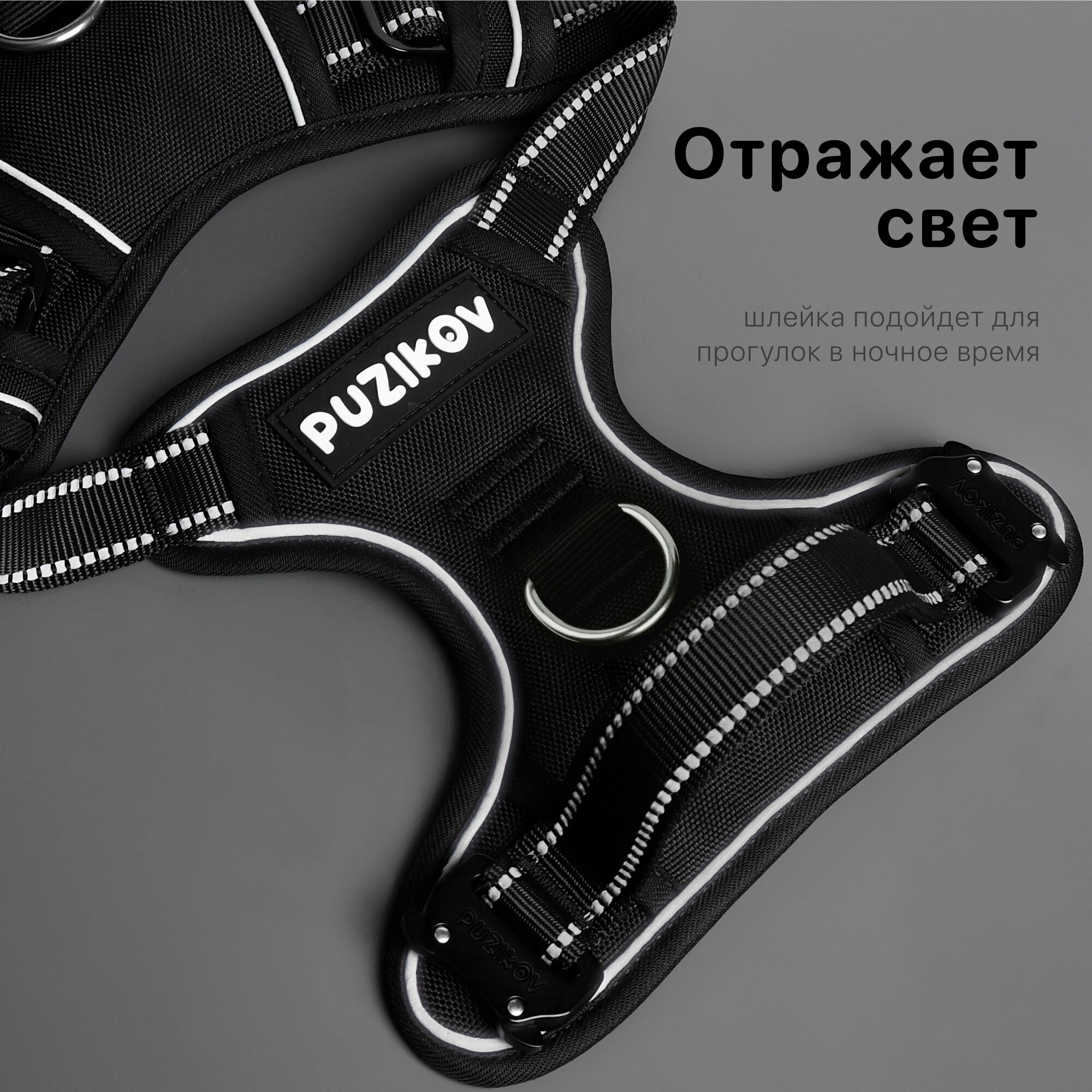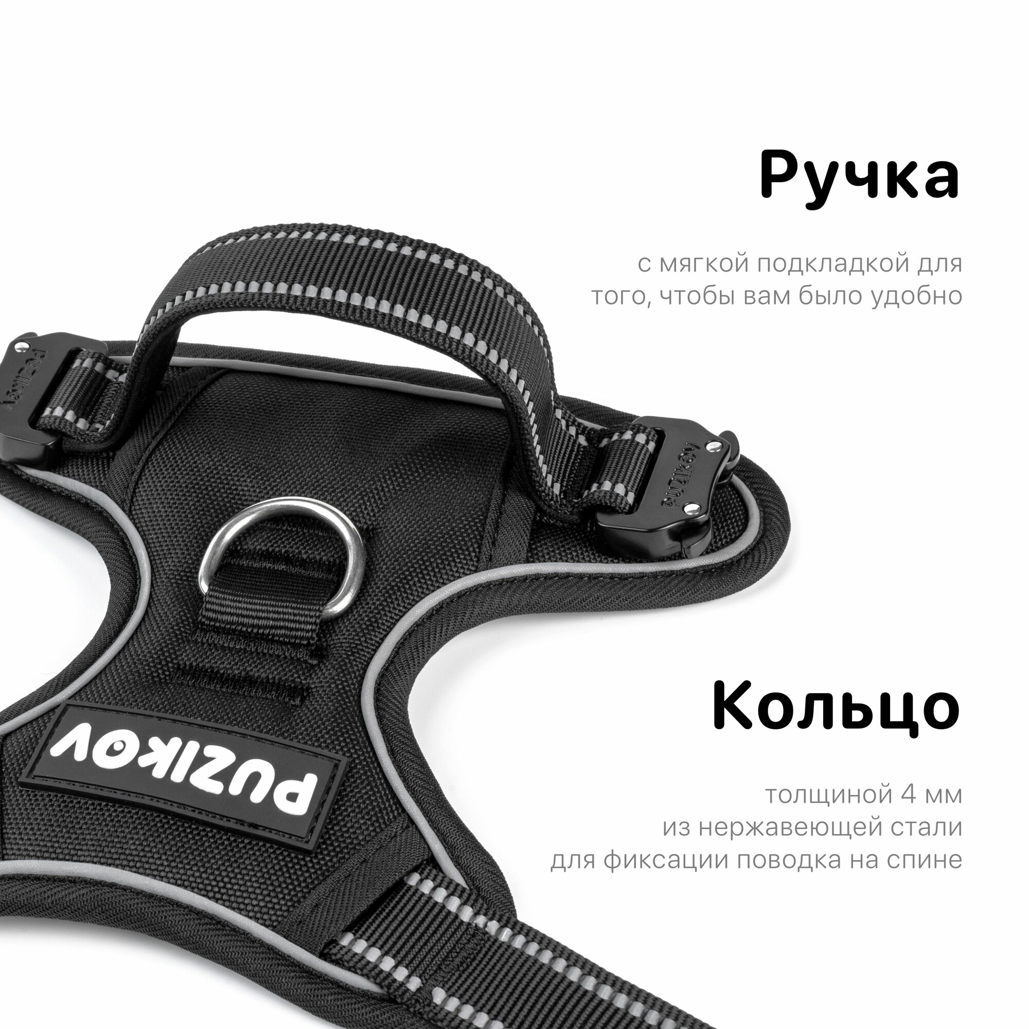 Шлейка для собак с фиксаторами из металла и мягкой ручкой, размер XL, черный, PUZIKOV / пузиков