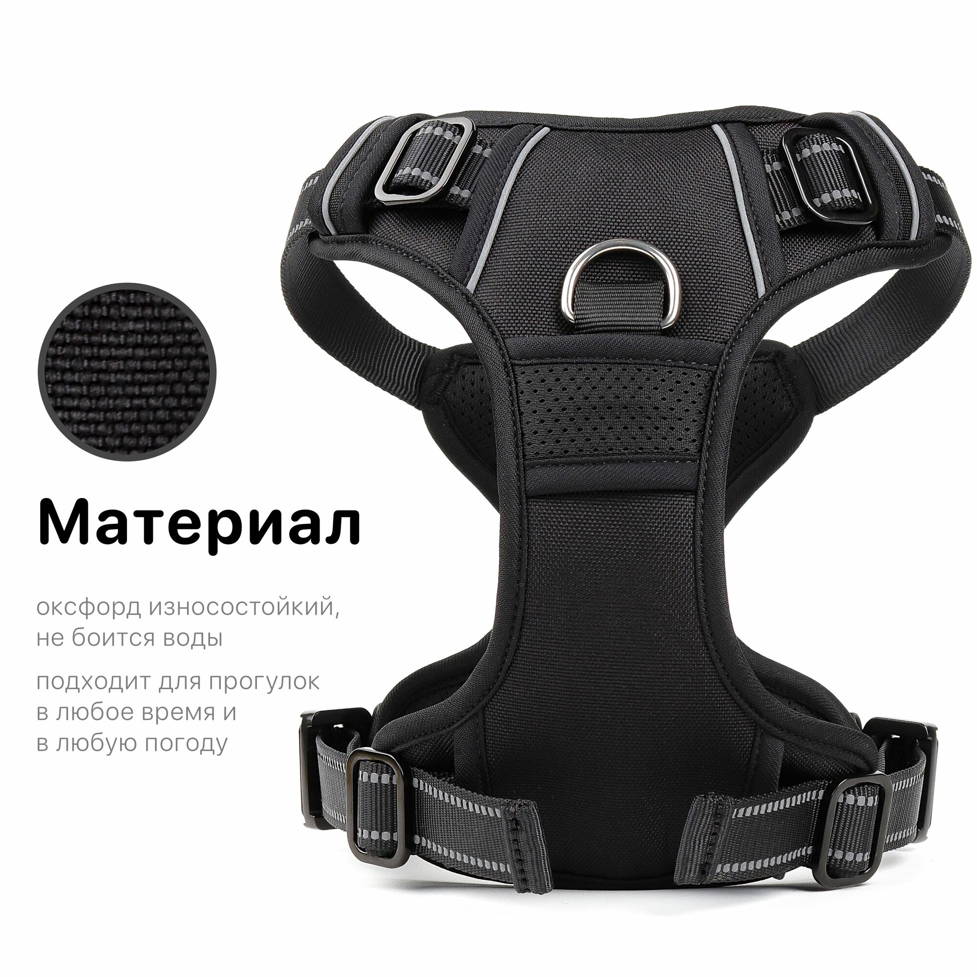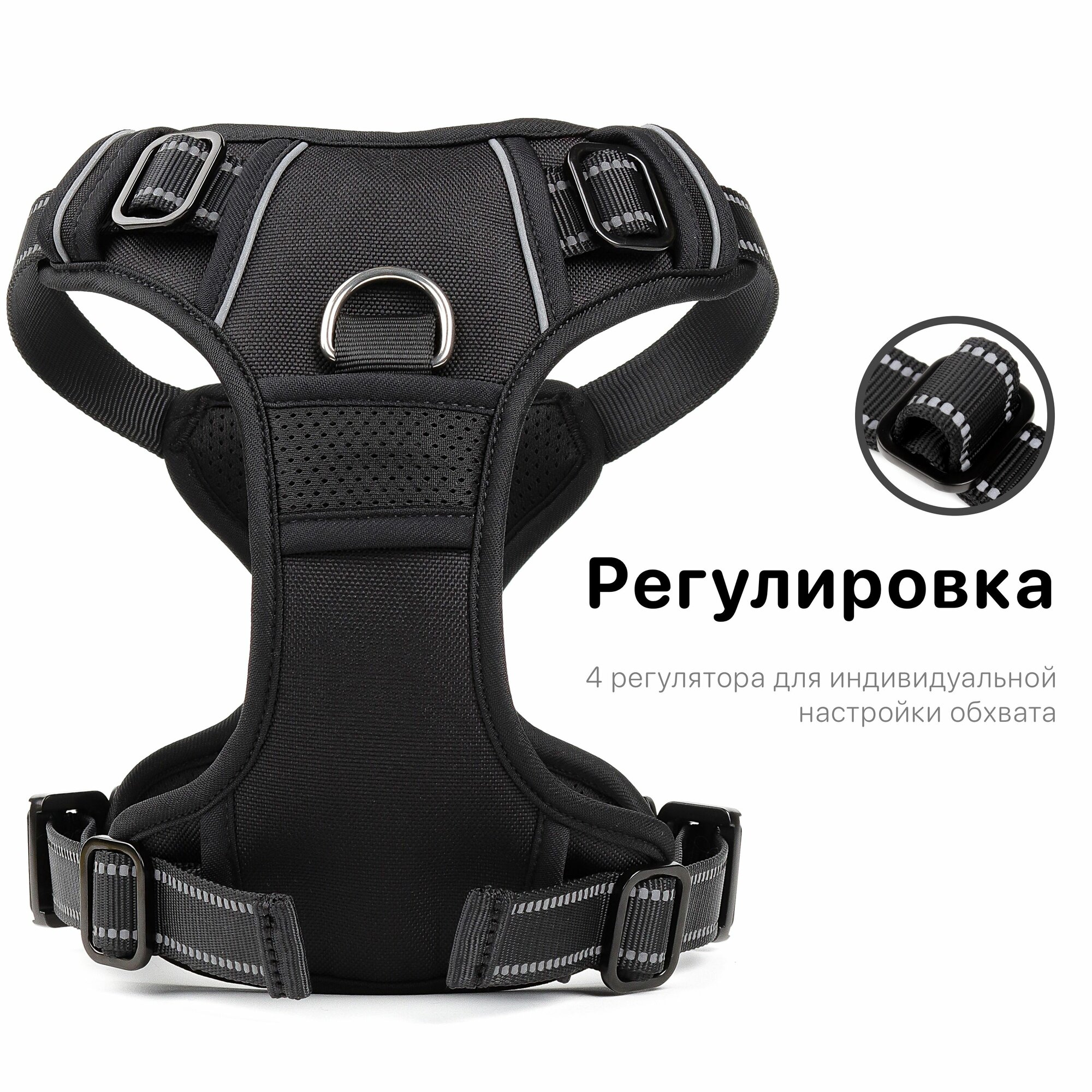 Шлейка для собак с фиксаторами из металла и мягкой ручкой, размер XL, черный