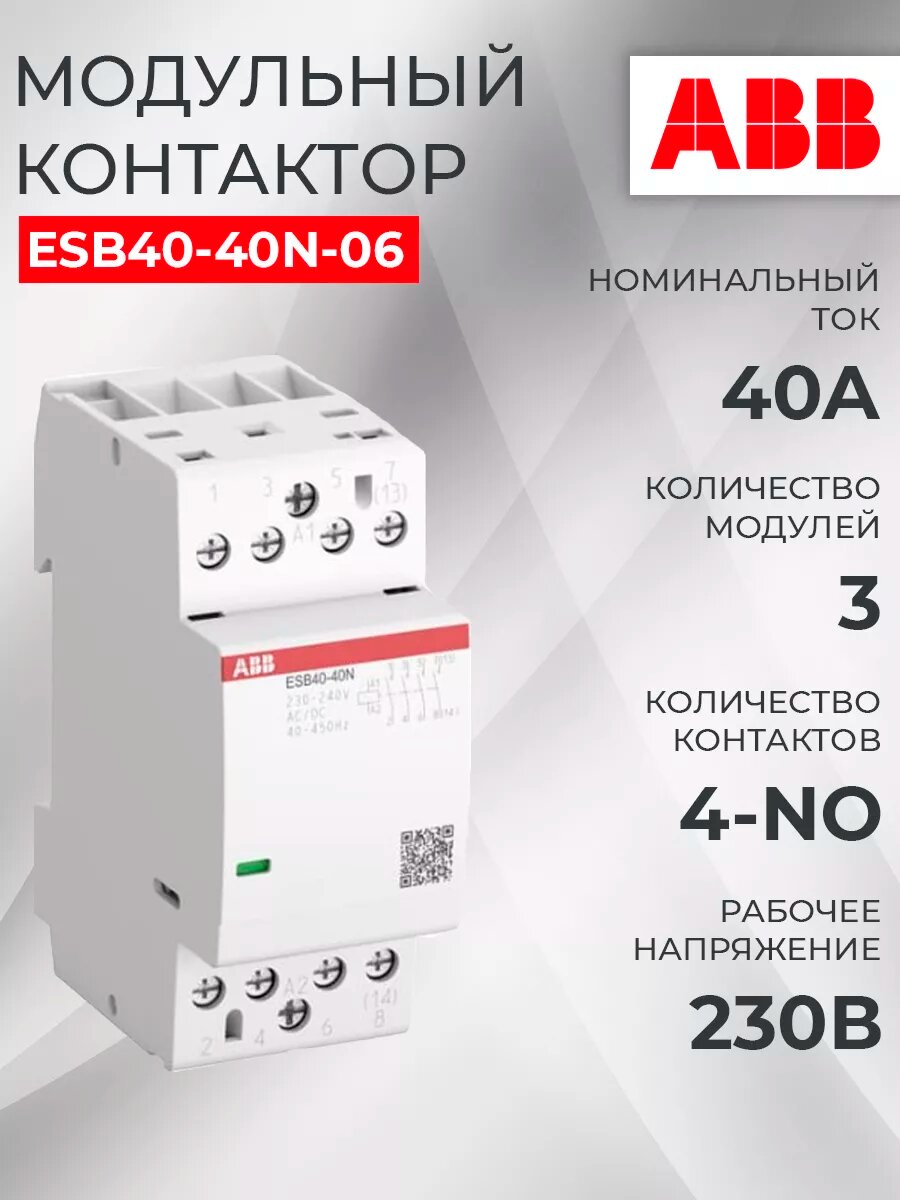 Контактор АВВ ESB-40-40N-06 40 A 220 В 1SAE341111R0640 интересное: