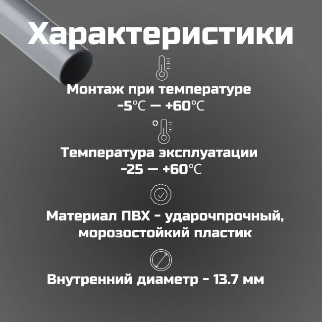 Труба ПВХ DKC гладкая, жесткая, легкая d16мм серая L1000 1шт.