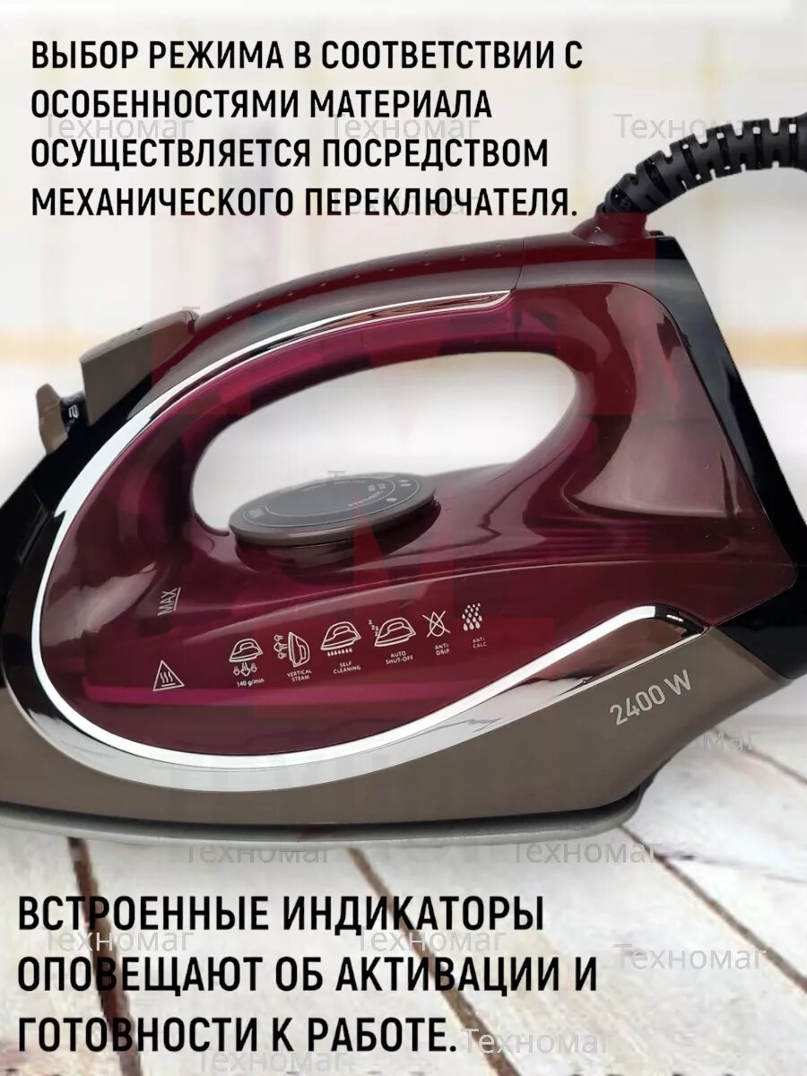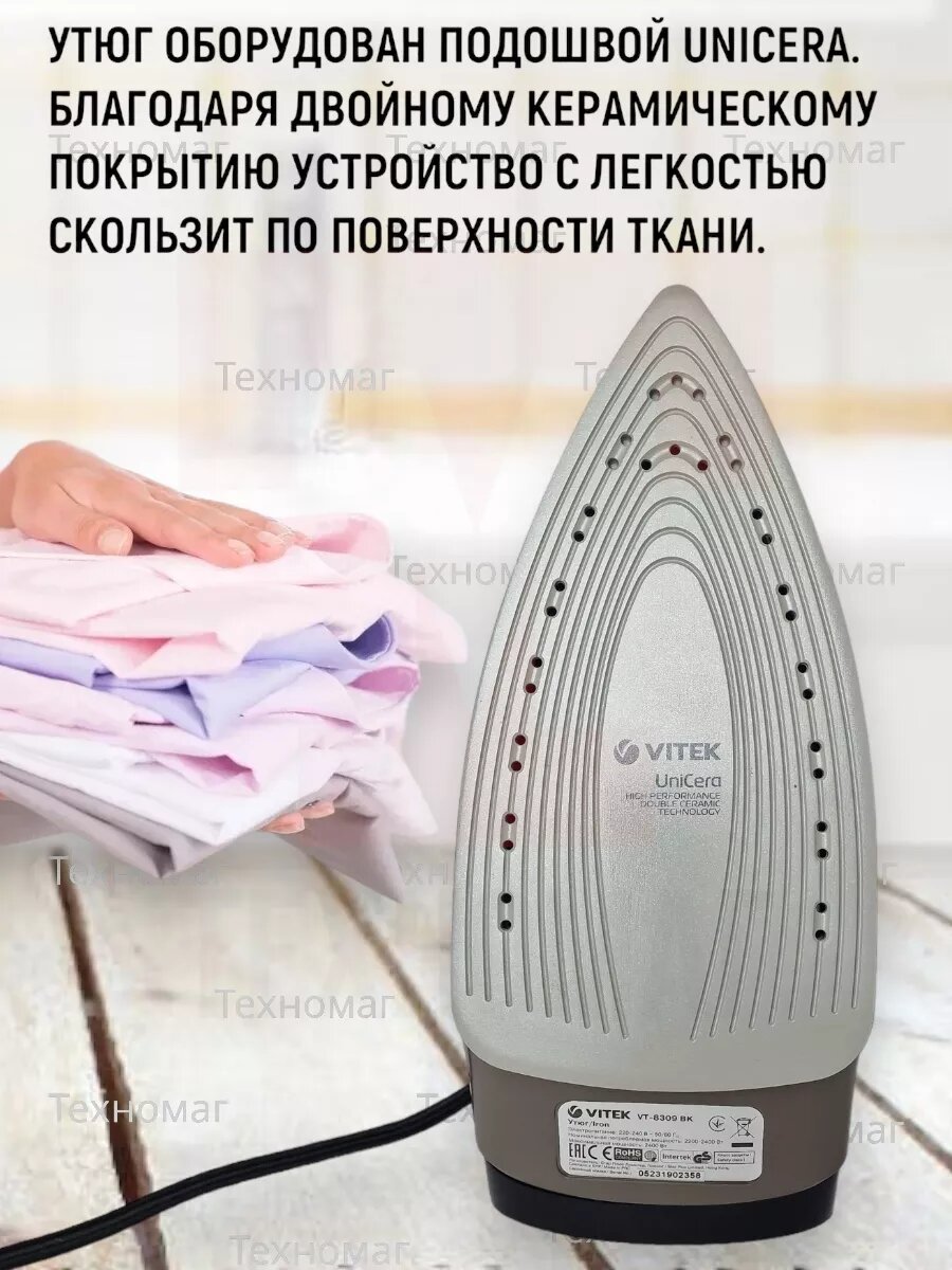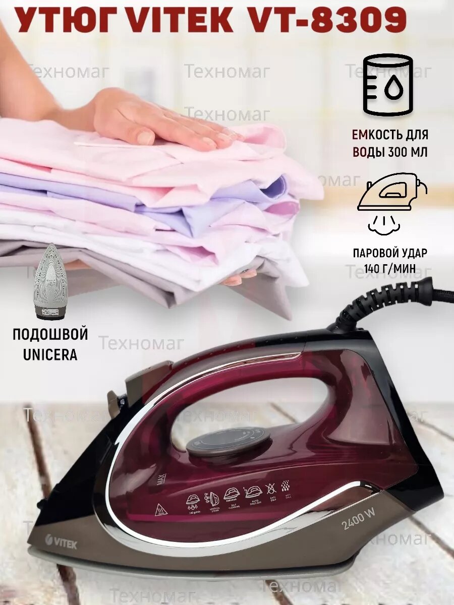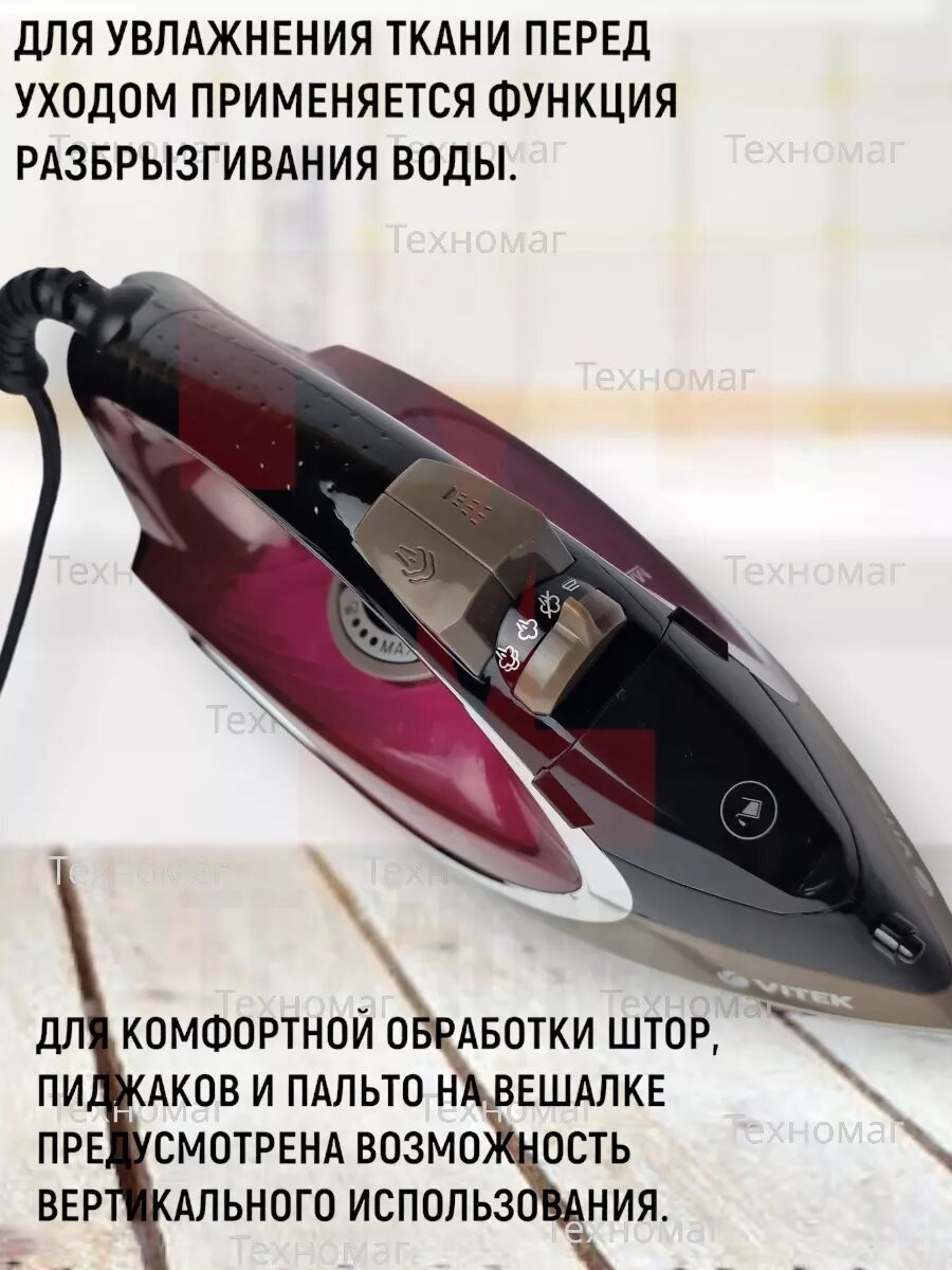 Утюг Vitek VT-8309 BK 2400Вт чёрный коричневый бордовый интересное: