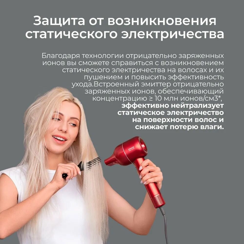 Фен для волос Dreame Hair Artist Red AHD5-RE0, 3 температурных режима, 2 скорости, светодиодный индикатор, 2 магнитные насадки, красный