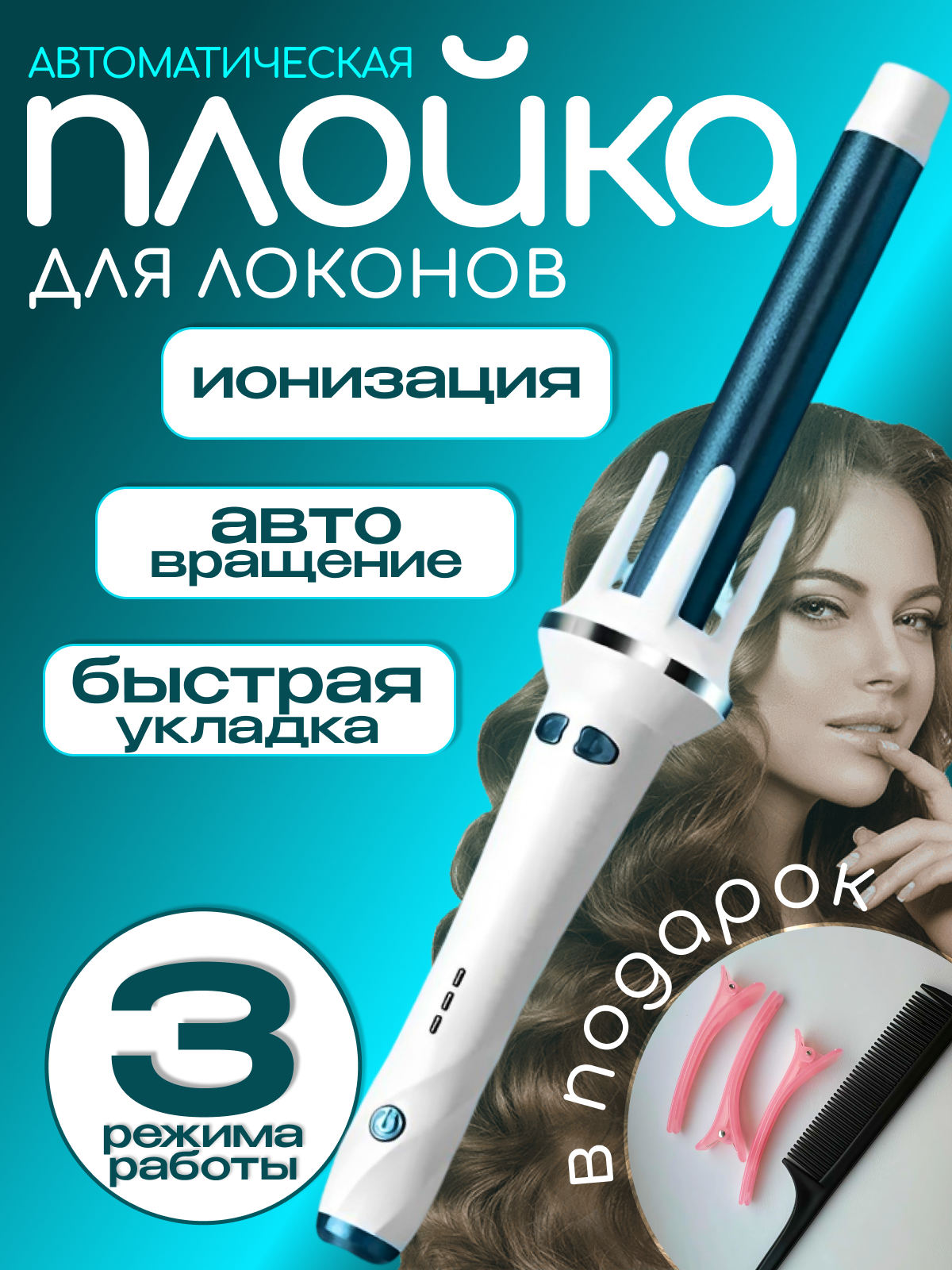 Автоматическая плойка для создания крупных локонов XN-388 , 3 режима, синяя интересное: