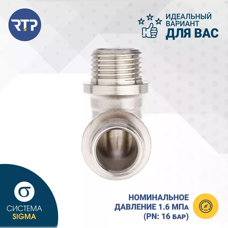 Угольник 90° резьба латунный никелированный RTP, НР/НР, 1/2"
