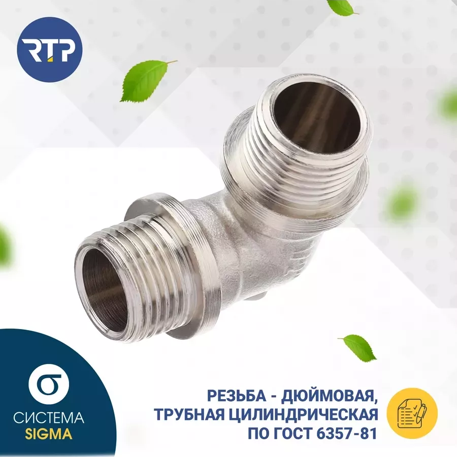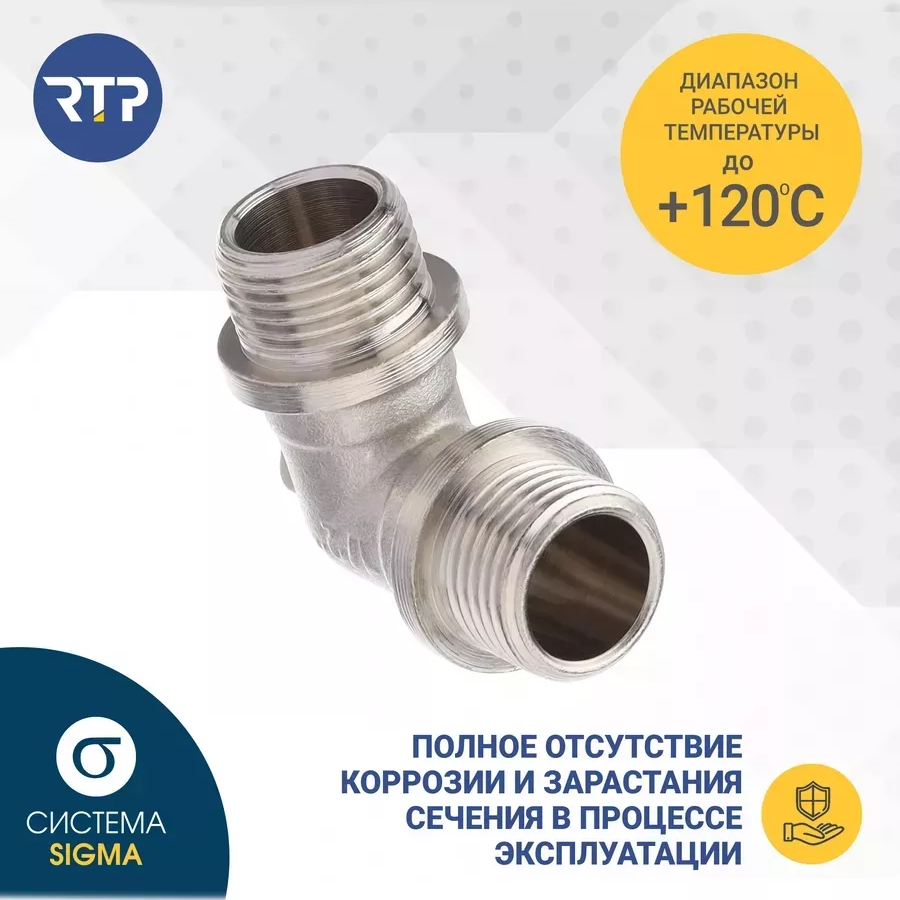Угольник латунь наружн./наружн. резьба 1/2дюймх90град. никель (инд. упак.) RTP 34932