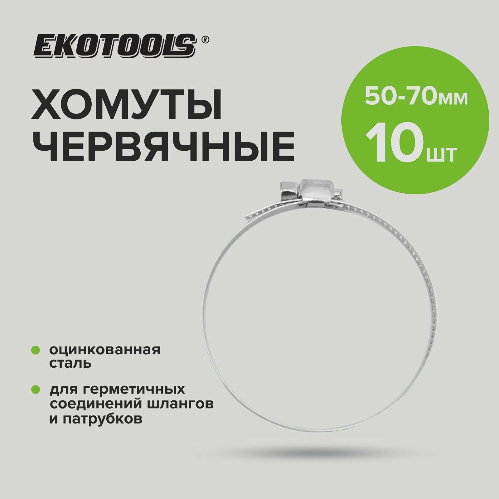 Купить Хомуты обжимные металлические оцинкованные 50-70 мм 10 шт, EKOTOOLS