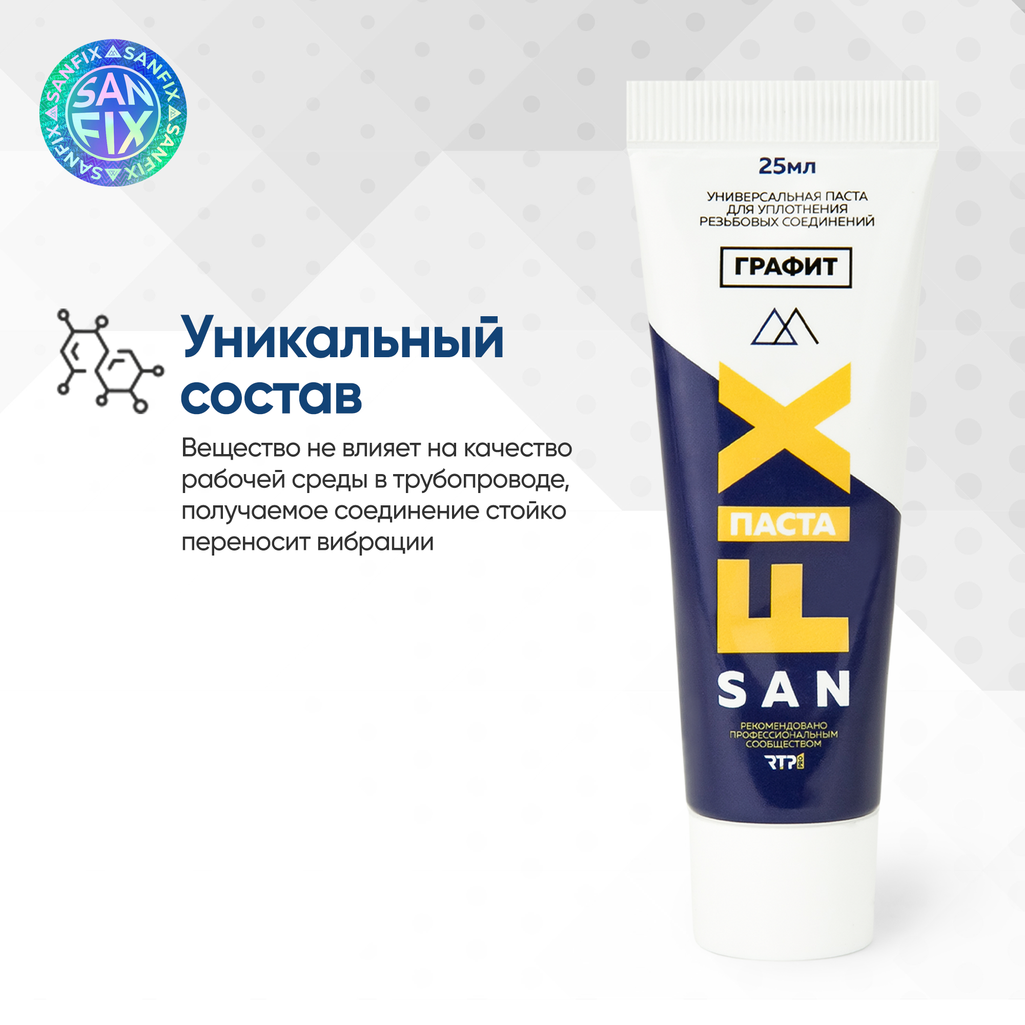 Паста универсальная, 70 мл, для уплотнения резьбовых соединеняя, графит, Sanfix, туба, 40715