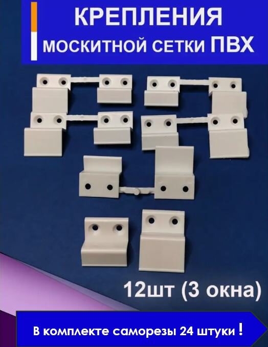 Крепления для москитной сетки на 3 окна WinDoorPro (верх - 6шт, низ - 6шт.), белый пластик
