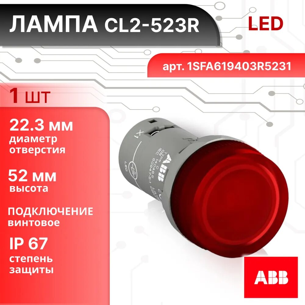 Сигнальная лампа красная со встроенным светодиодом 230В AC CL2-523R ABB 1SFA619403R5231 1шт интересное: