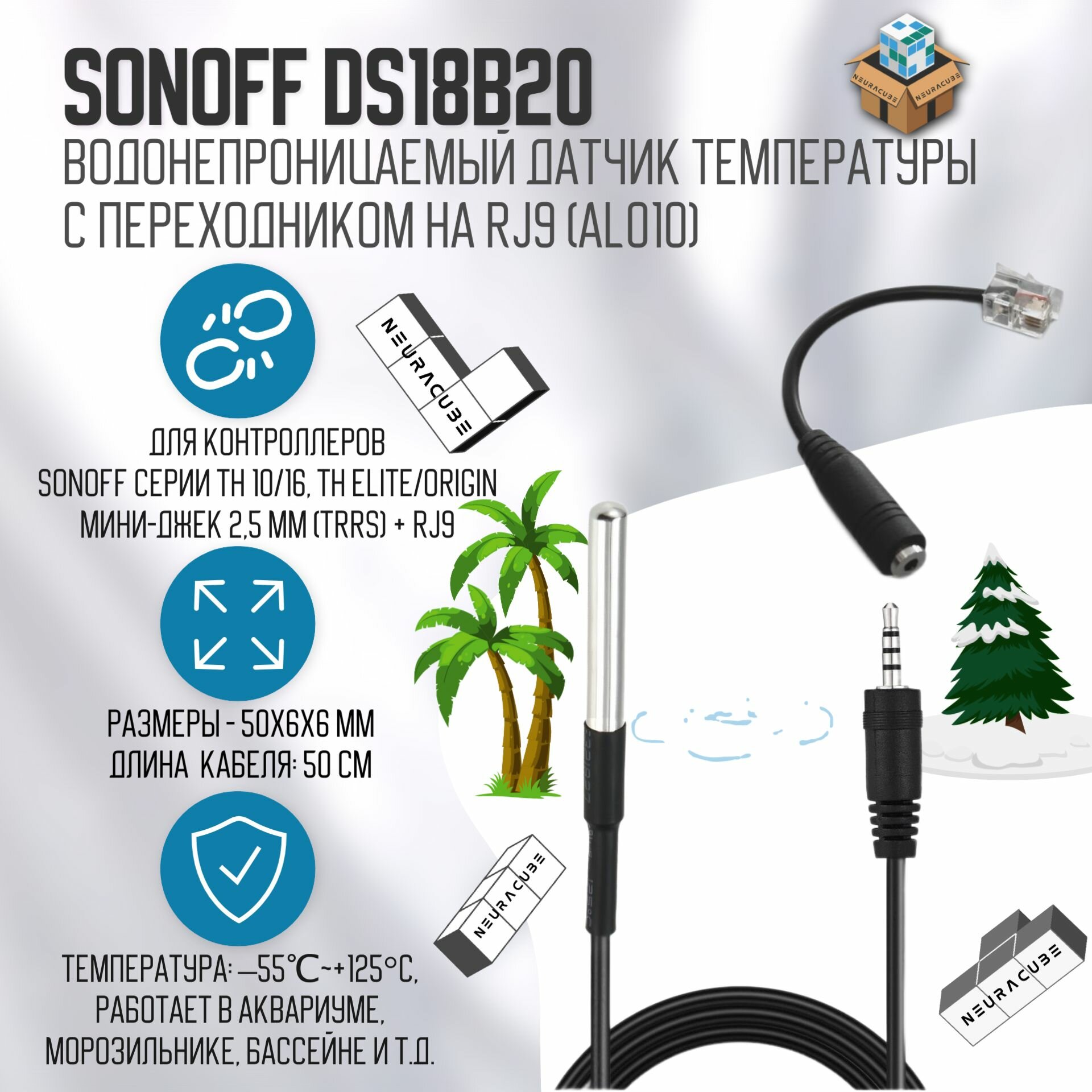 Датчик температуры Sonoff DS18B20 с переходником AL010 (для реле TH Elite/Origin/TH 10)