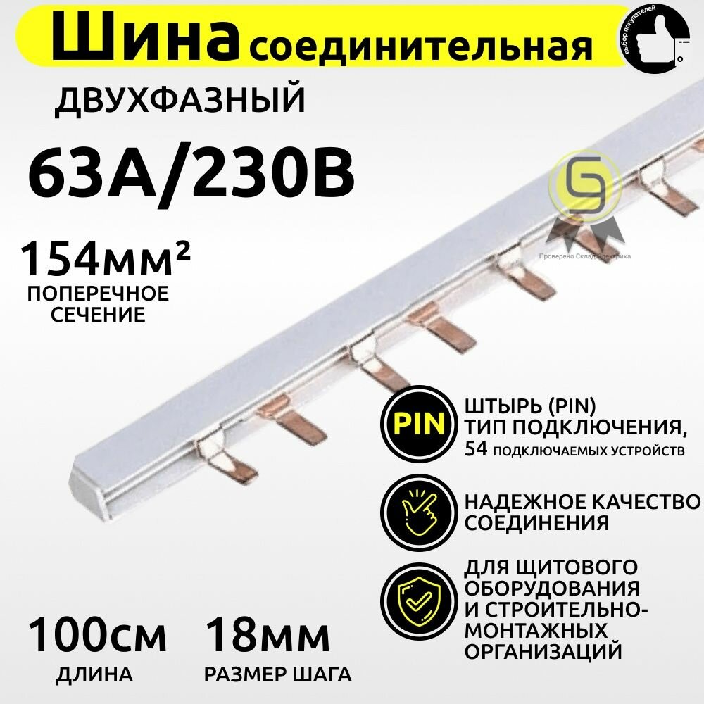 Купить Шина соединительная типа PIN (штырь) двухфазная 63А (1м)