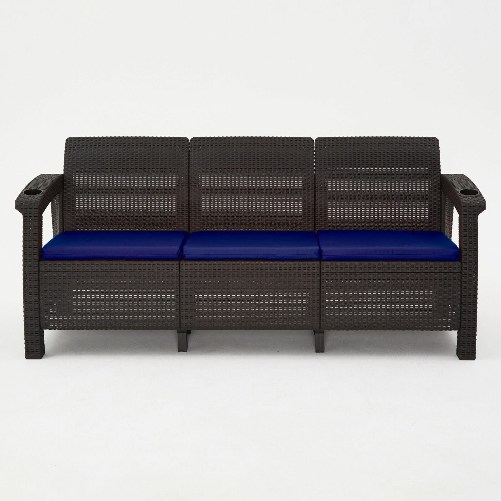 Купить Диван садовый, 3-х местный, 188x70x79 см, мокко (с темно-синими подушками)
