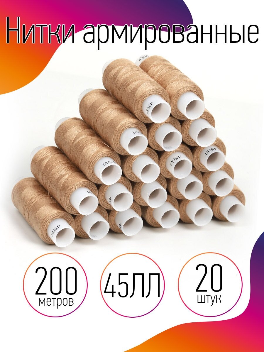 Швейные нитки ПНК им. Кирова армированные, 45ЛЛ, 20 катушек по 200 м, цвет 6002, бежевый (2.45ЛЛ.200.6002)