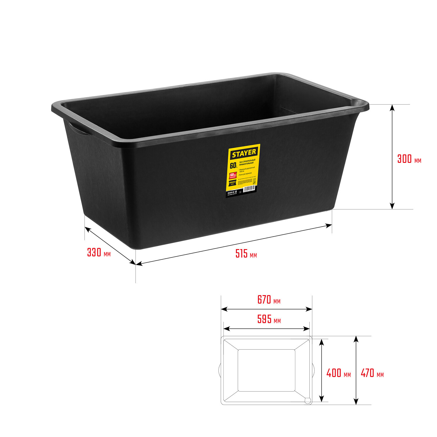 Таз строительный пластмассовый, Master, трапециевидный, 60 л, 30x42x75 см, STAYER