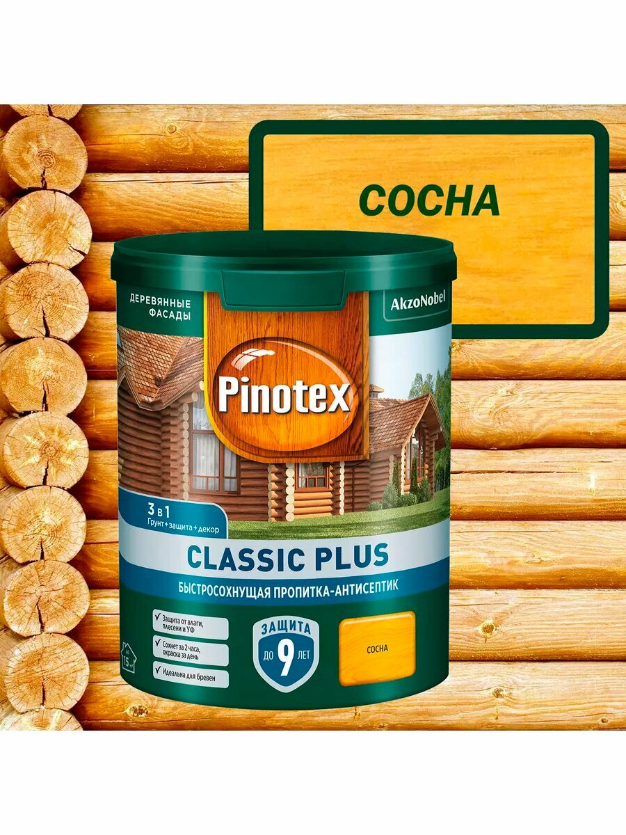PINOTEX CLASSIC PLUS пропитка-антисептик быстросохнущая 3 в 1, сосна (0,9л)