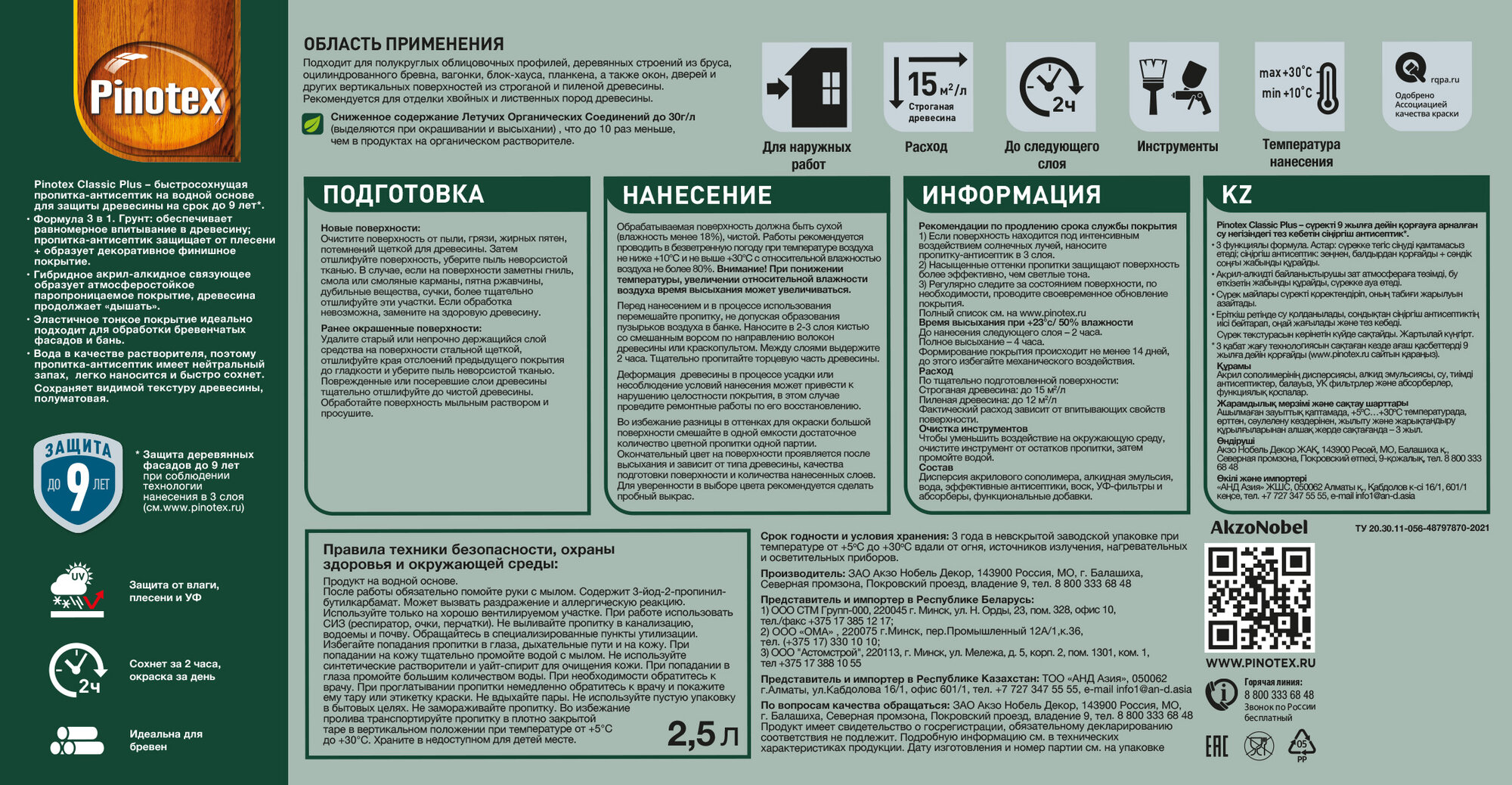 PINOTEX CLASSIC Plus RU Пропитка Лиственница 2,5л