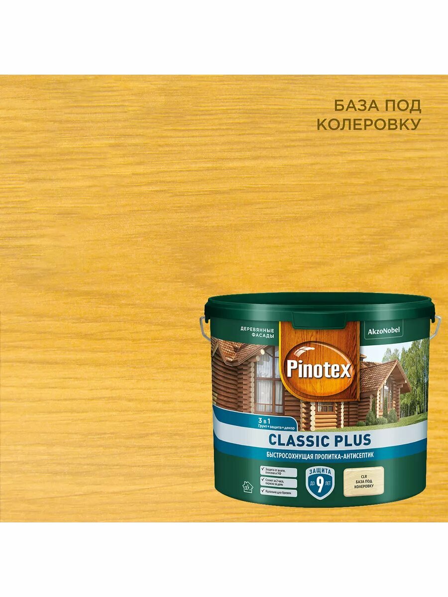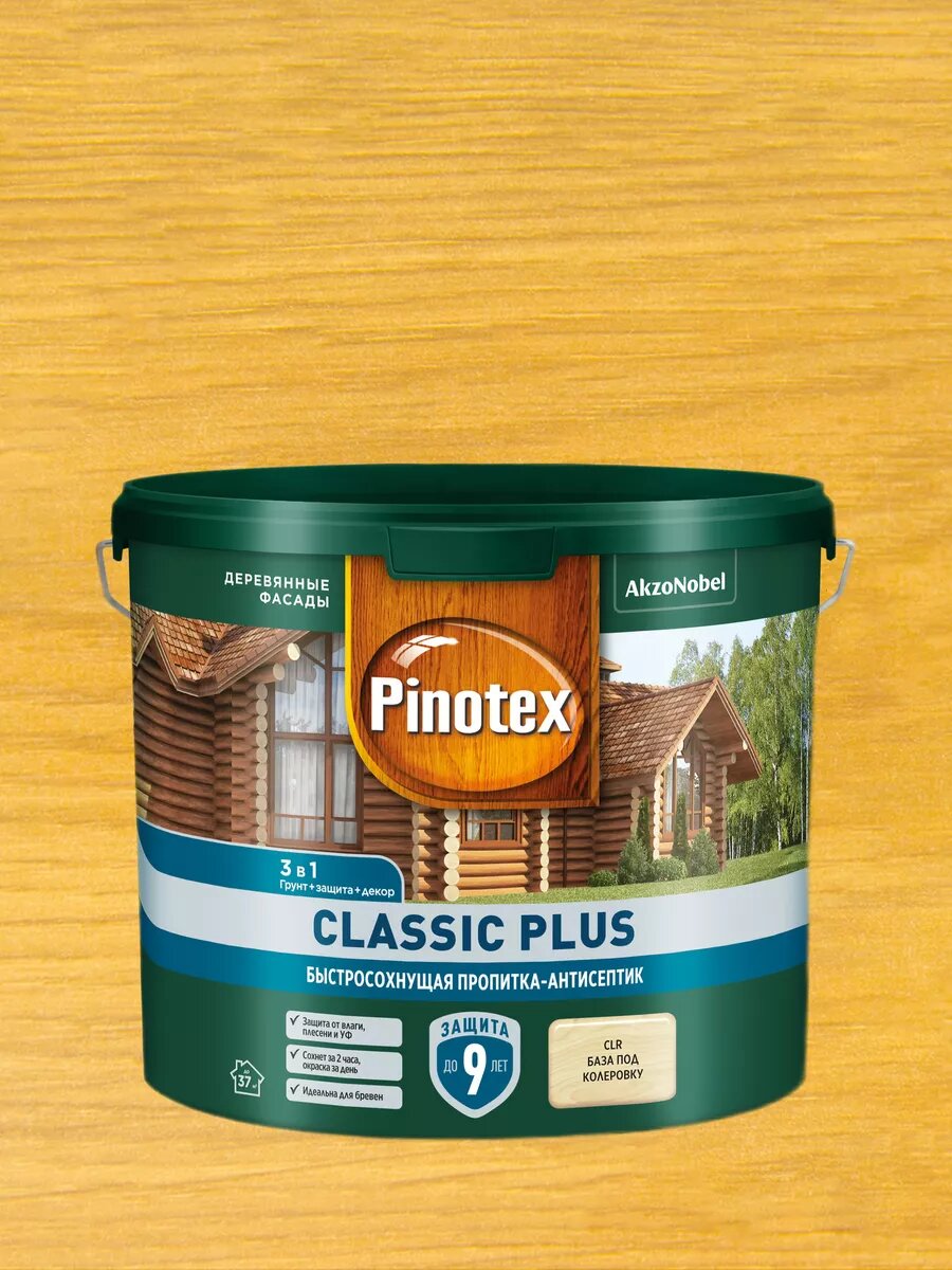 PINOTEX CLASSIC PLUS пропитка-антисептик быстросохнущая 3 в 1 ель натуральная 9л