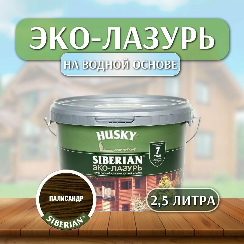 HUSKY SIBERIAN Эко-Лазурь для дерева полуматовая палисандр (черное дерево) (2,5л)