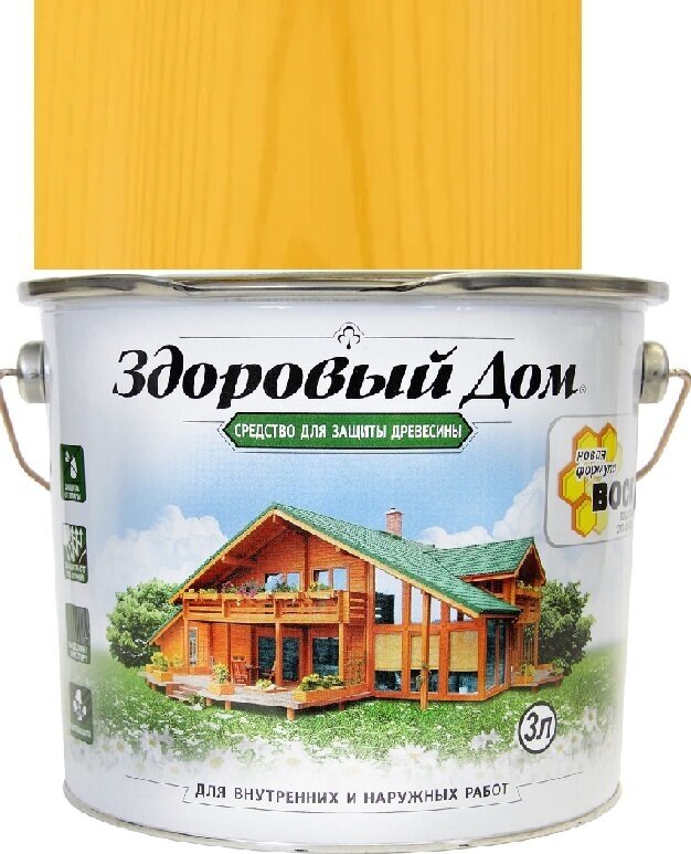 Средство для Защиты Древесины Здоровый Дом 3л Сосна, Алкидная для Внутренних и Наружных Работ.