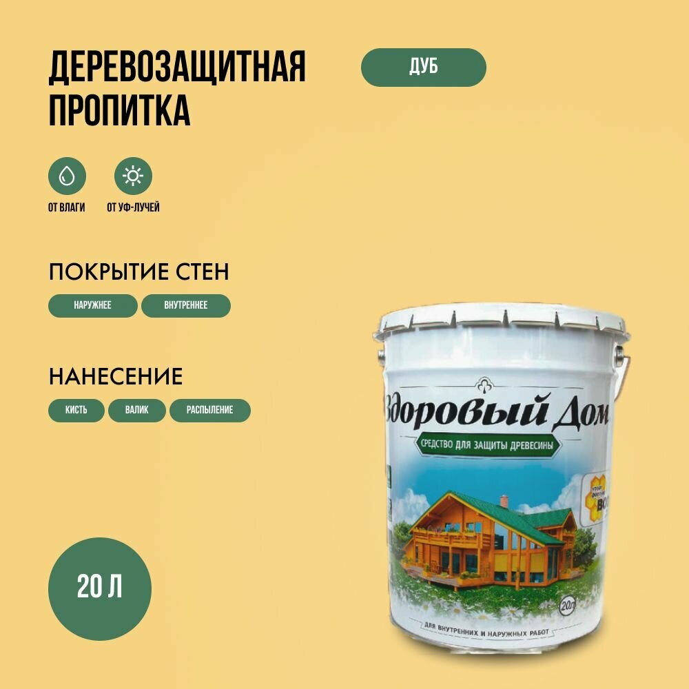 Средство для Защиты Древесины Здоровый Дом 10л Дуб, Алкидная для Внутренних и Наружных Работ.