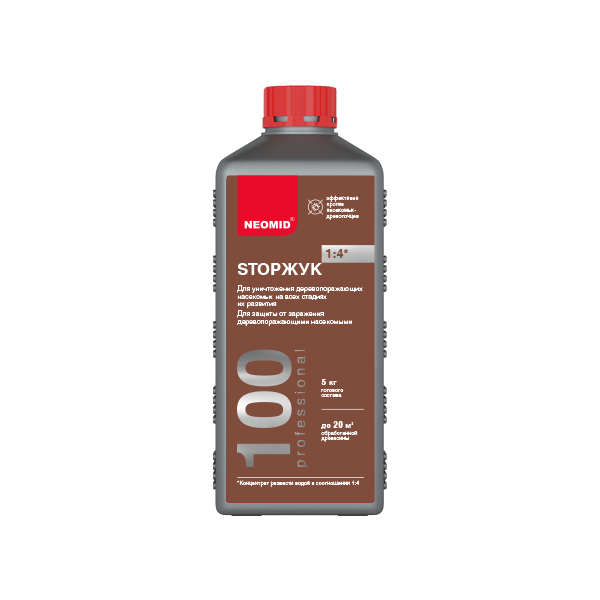 NEOMID STOP ЖУК 100 средство для защиты древесины и уничтожения жука, концентрат 1:4 (1 л)