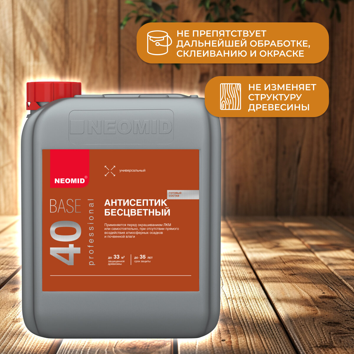 Универсальный Антисептик Neomid 40 Base ECO 10л Бесцветный для Наружных и Внутренних Работ / Неомид 40 Бейз Эко.