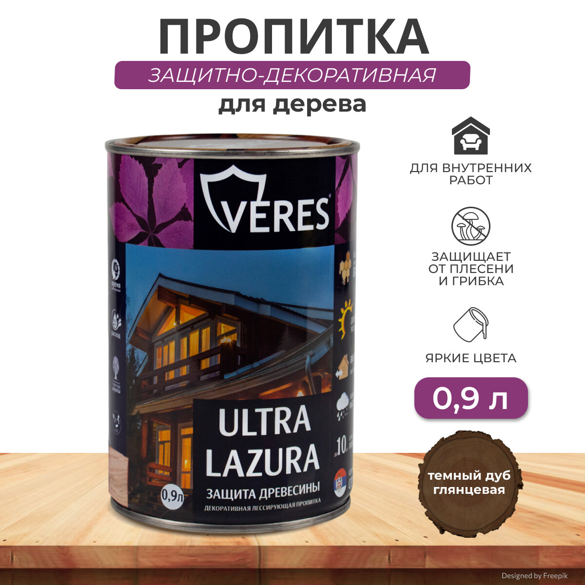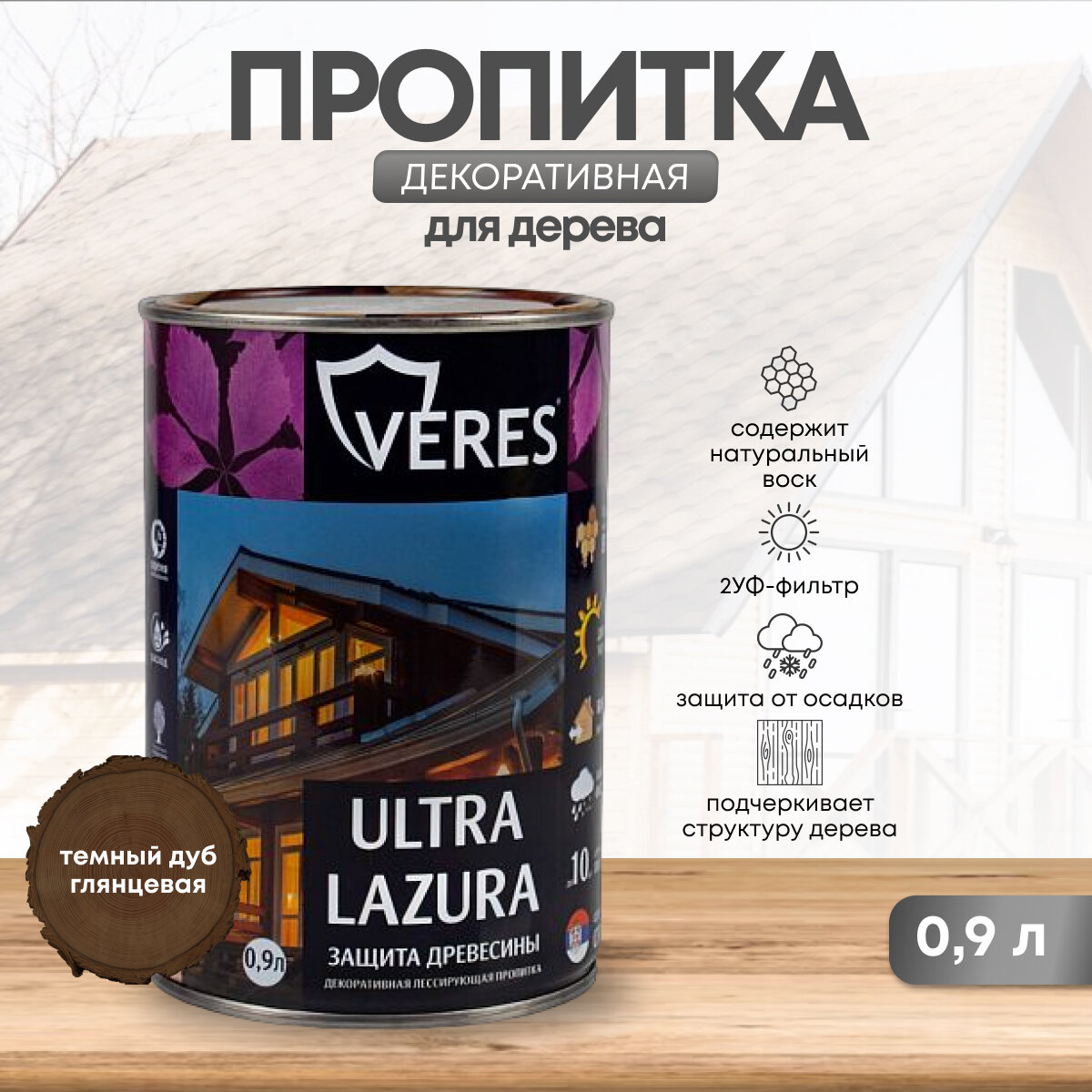 Купить Декоративная пропитка для дерева Veres Ultra Lazura №8, глянцевая, 0,9 л, дуб темный