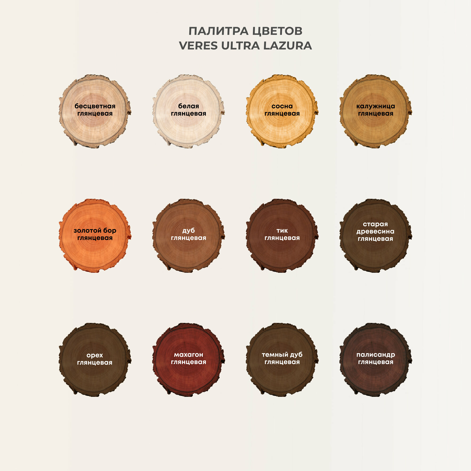Декоративная пропитка для дерева Veres Ultra Lazura №2, глянцевая, 9 л, сосна