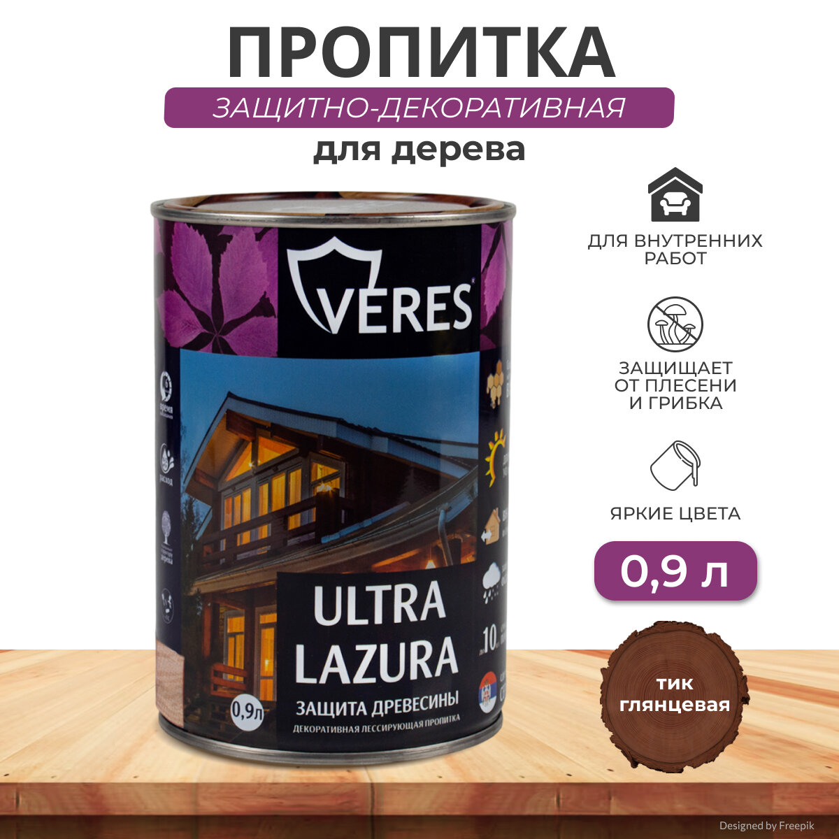 Купить Декоративная пропитка для дерева Veres Ultra Lazura №3, глянцевая, 0,9 л, тик