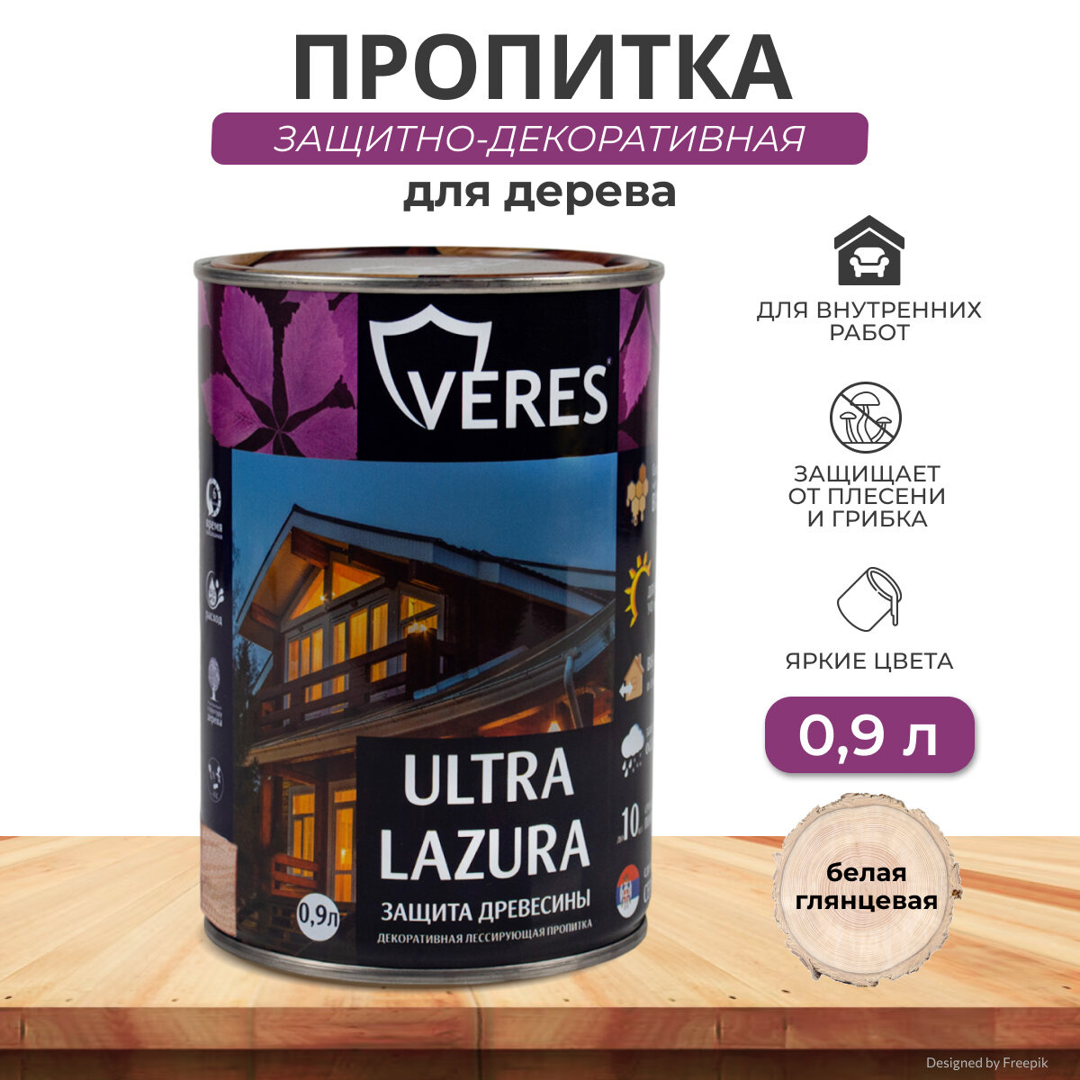 Купить Декоративная пропитка для дерева Veres Ultra Lazura №12, глянцевая, 0,9 л, белая