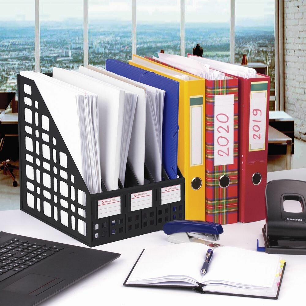 Лоток/подставка/органайзер вертикальный канцелярский сетчатый для документов/бумаг/файлов, 3 отделения, сборный, Brauberg "MAXI Plus" 240 мм, черный, 237013