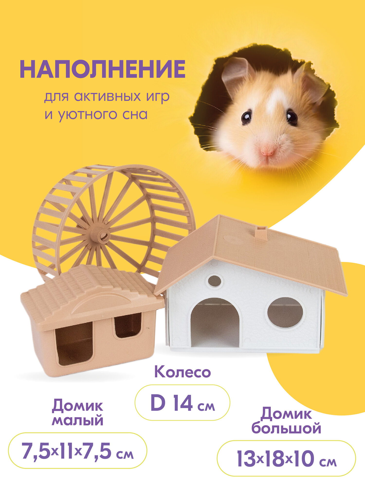 Купить Клетка для грызунов "PetTails" разборная, шаг прута 10,5мм, 42*30*h89см, 5 этажей (+полка-домик, колесо, миска, 2 пласт. домика) бежевая