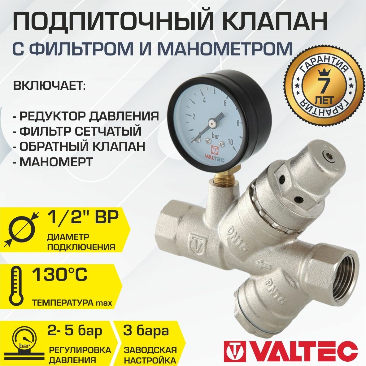 Подпиточный клапан VALTEC VT.515.N.04 с фильтром механической очистки и манометром 1/2" интересное: