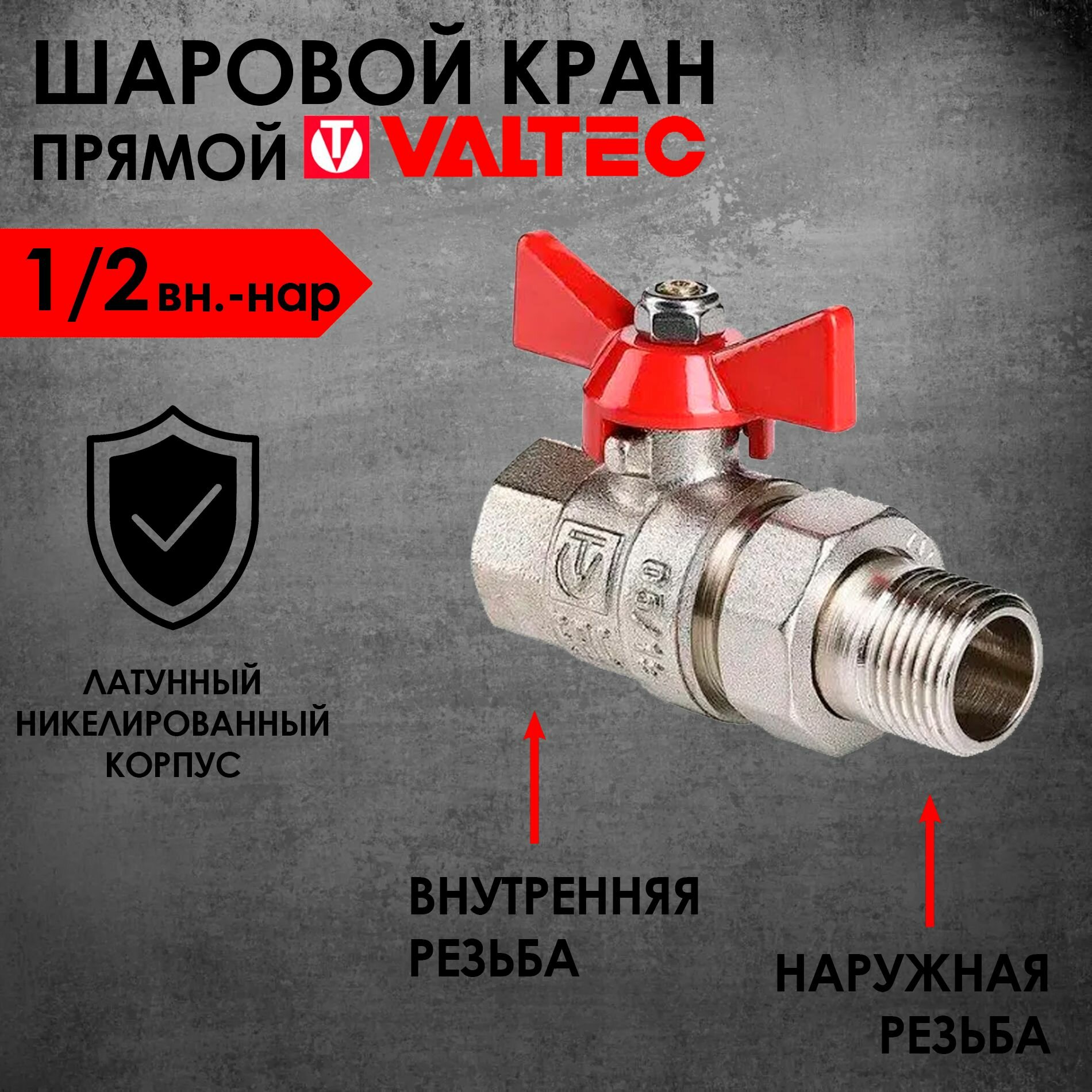 Valtec Кран шар. Base с полусгоном 1/2" вн.-нар. VT.227.N.04