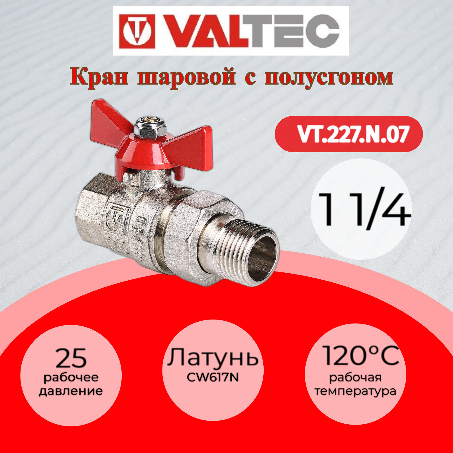 Кран шаровой VALTEC BASE с полусгоном 1 1/4" VALTEC BASE VT.227. N.07