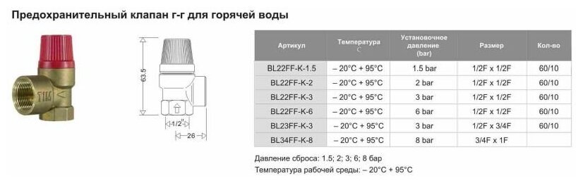 Предохранительный клапан, красный колпачок, 3 бар, 1/2" г-г, Tim BL22FF-K-3 bar интересное: