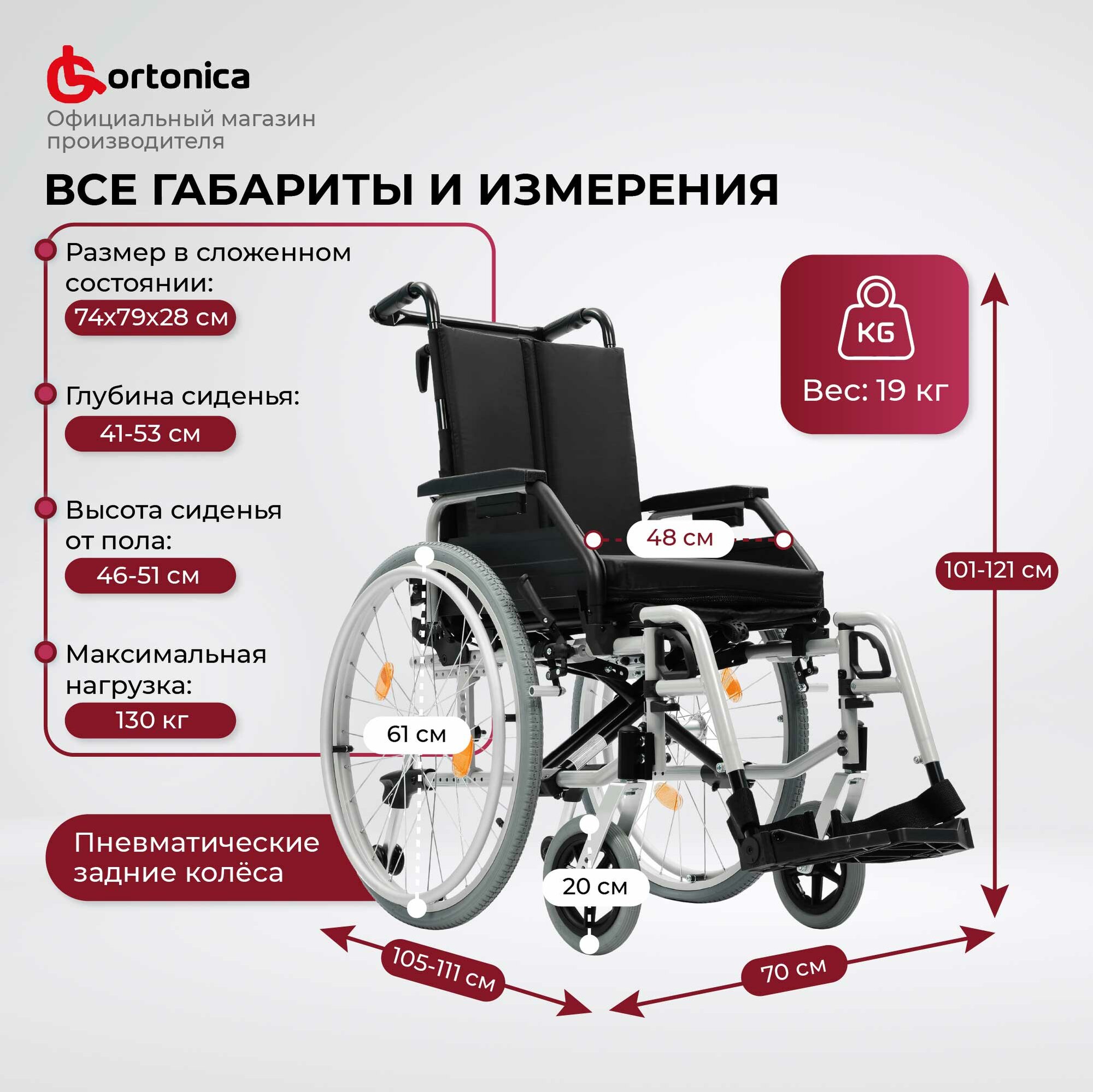 Кресло-коляска для инвалидов Ortonica Active Life 7000, ширина сиденья 43 см