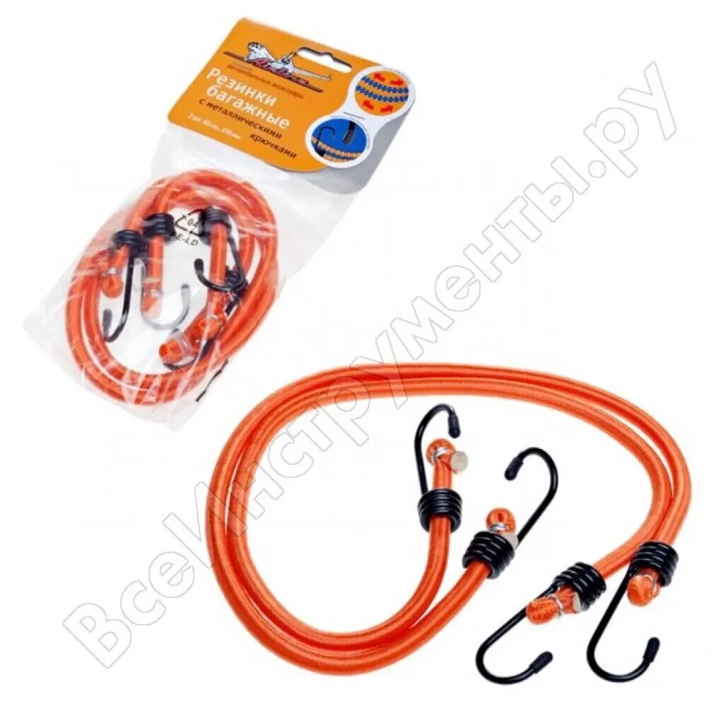 AIRLINE Резинка для крепления багажа Airline, 80 см, d8 мм, металлические крючки, набор 2 шт