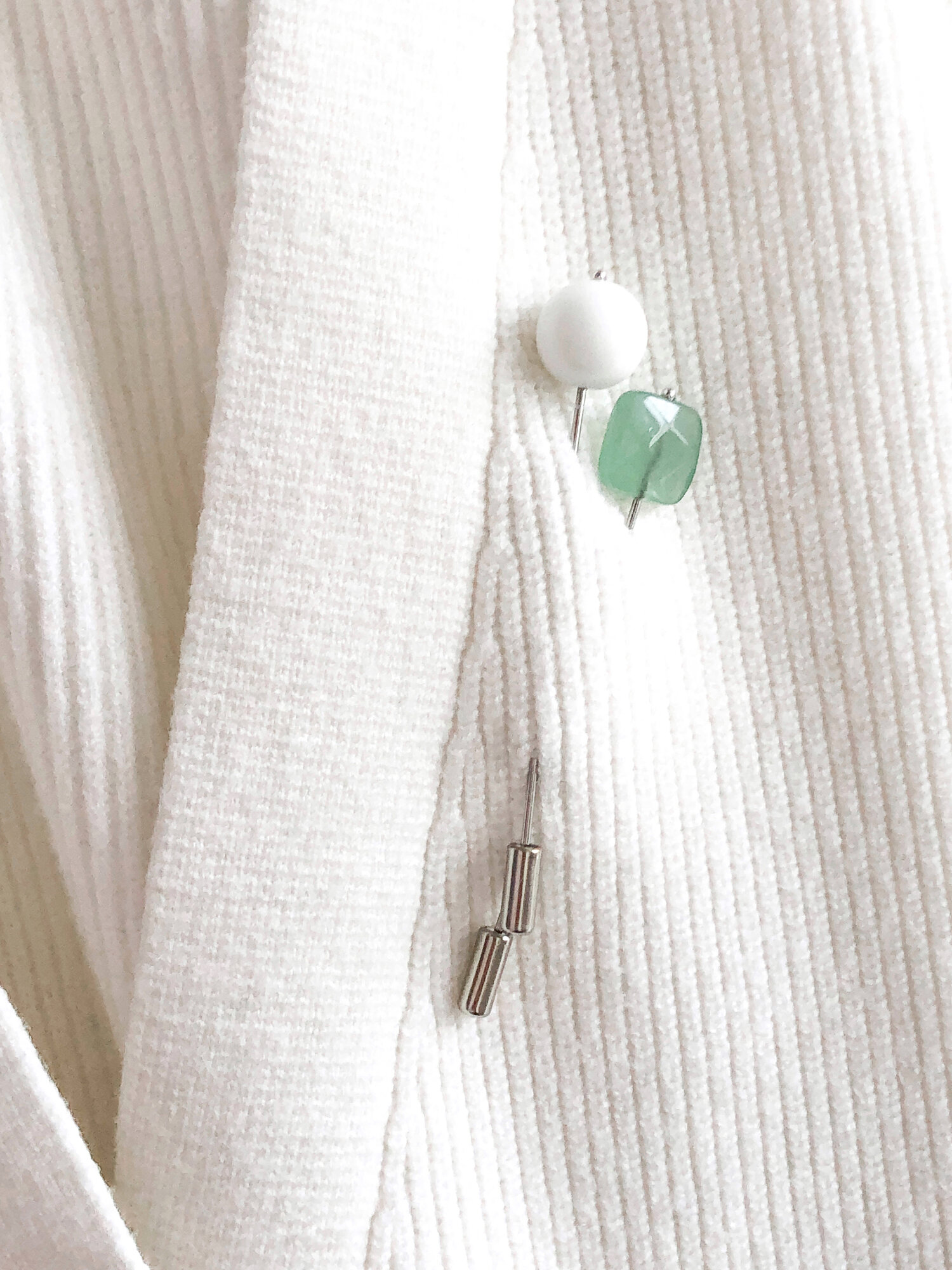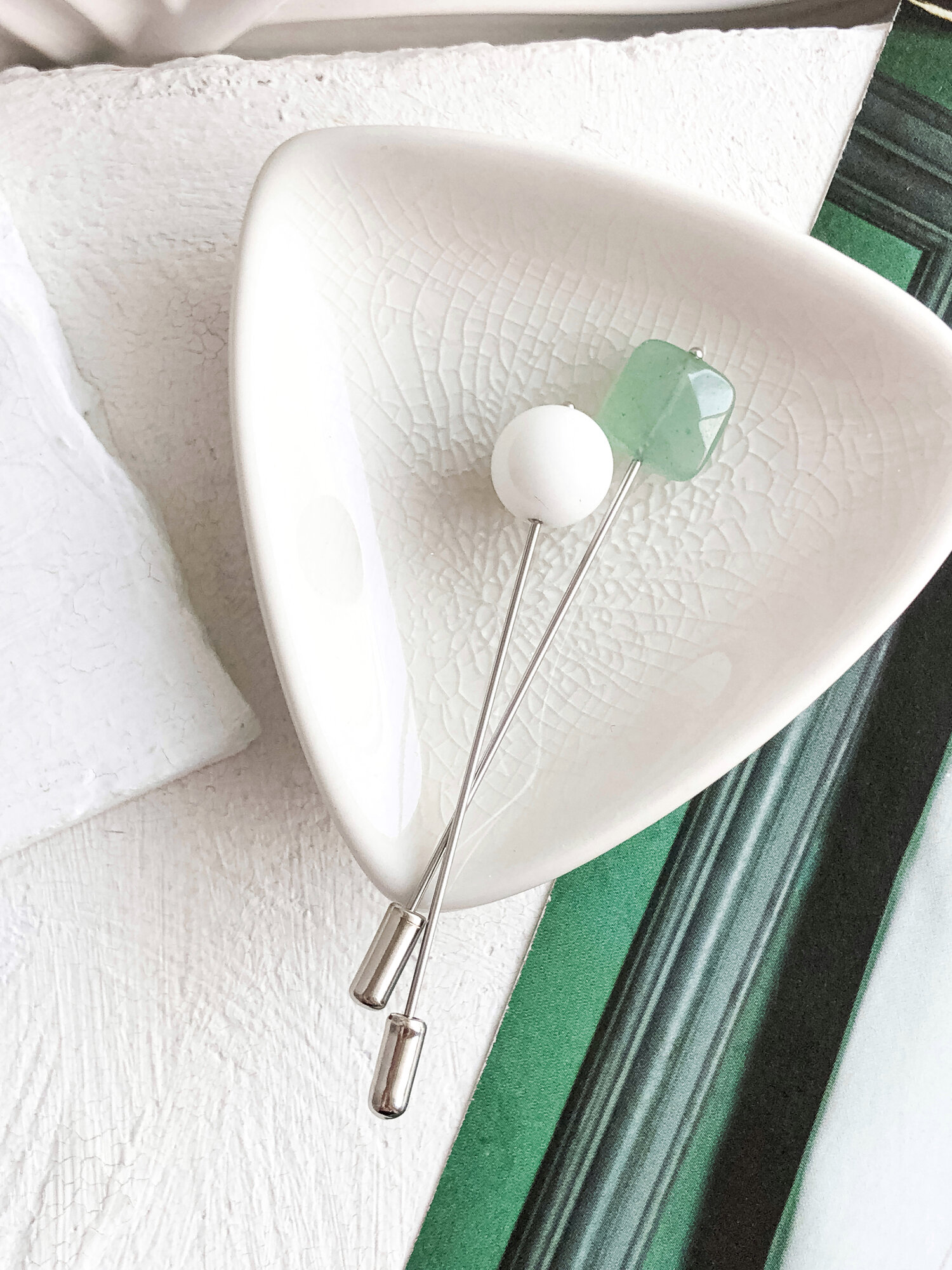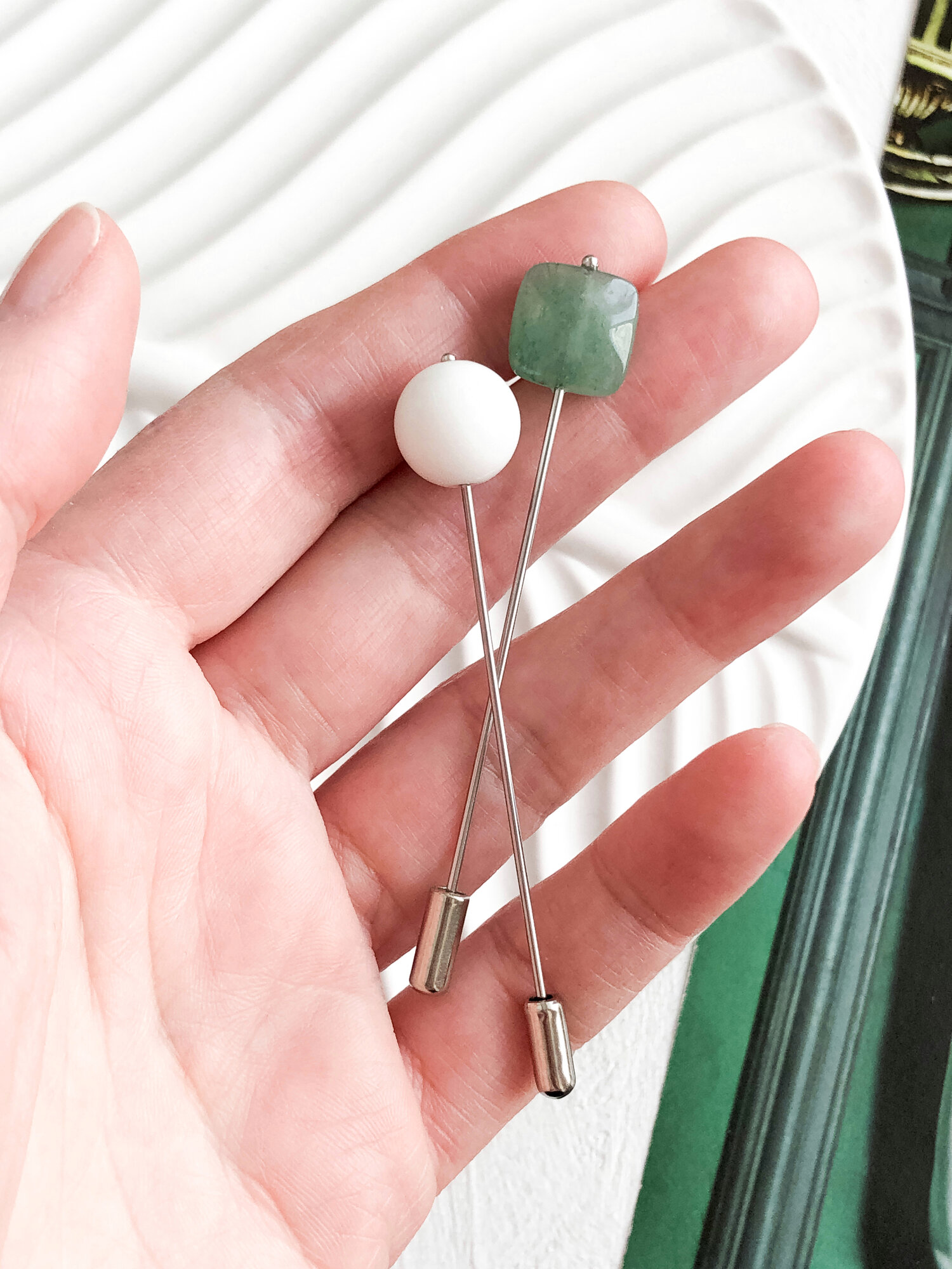 Брошь булавка оникс, яшма Далматиновая (диорит)