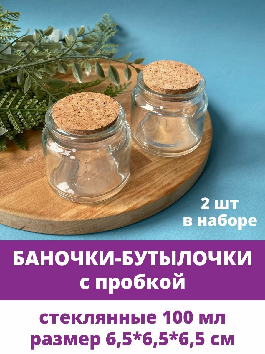 Купить Баночки - бутылочки с пробкой, декоративные, стеклянные 100 мл, прозрачные, 6,5*6,5*6,5 см, 2 шт.