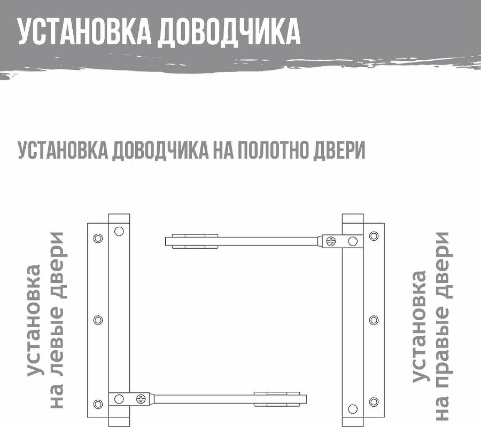| Дополнительная информация | скорость закрывания регулируется при повороте заглушки, размещенной в нижней части корпуса доводчика |