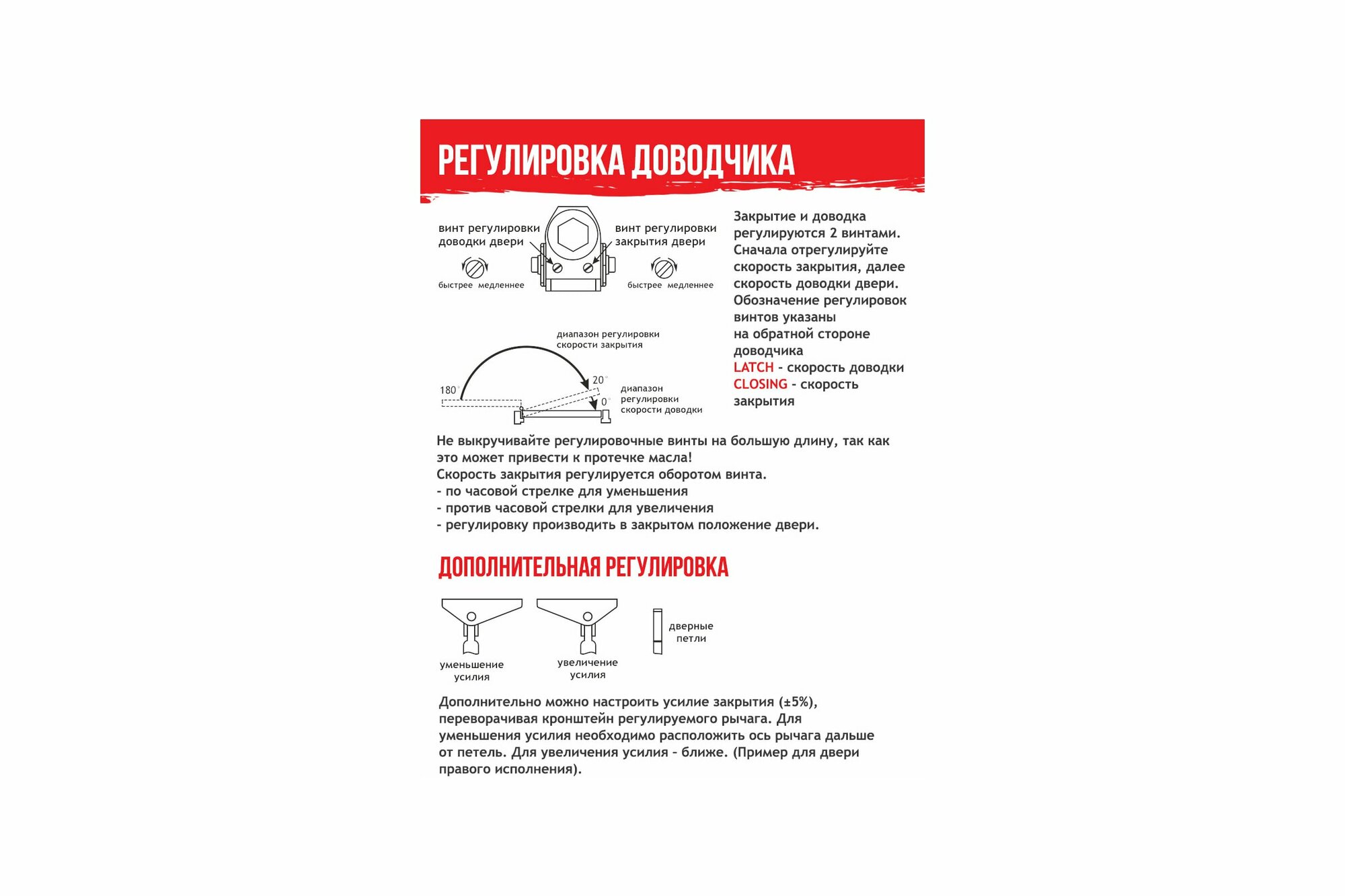 | Внутренний механизм доводчика | шестеренно-реечный |