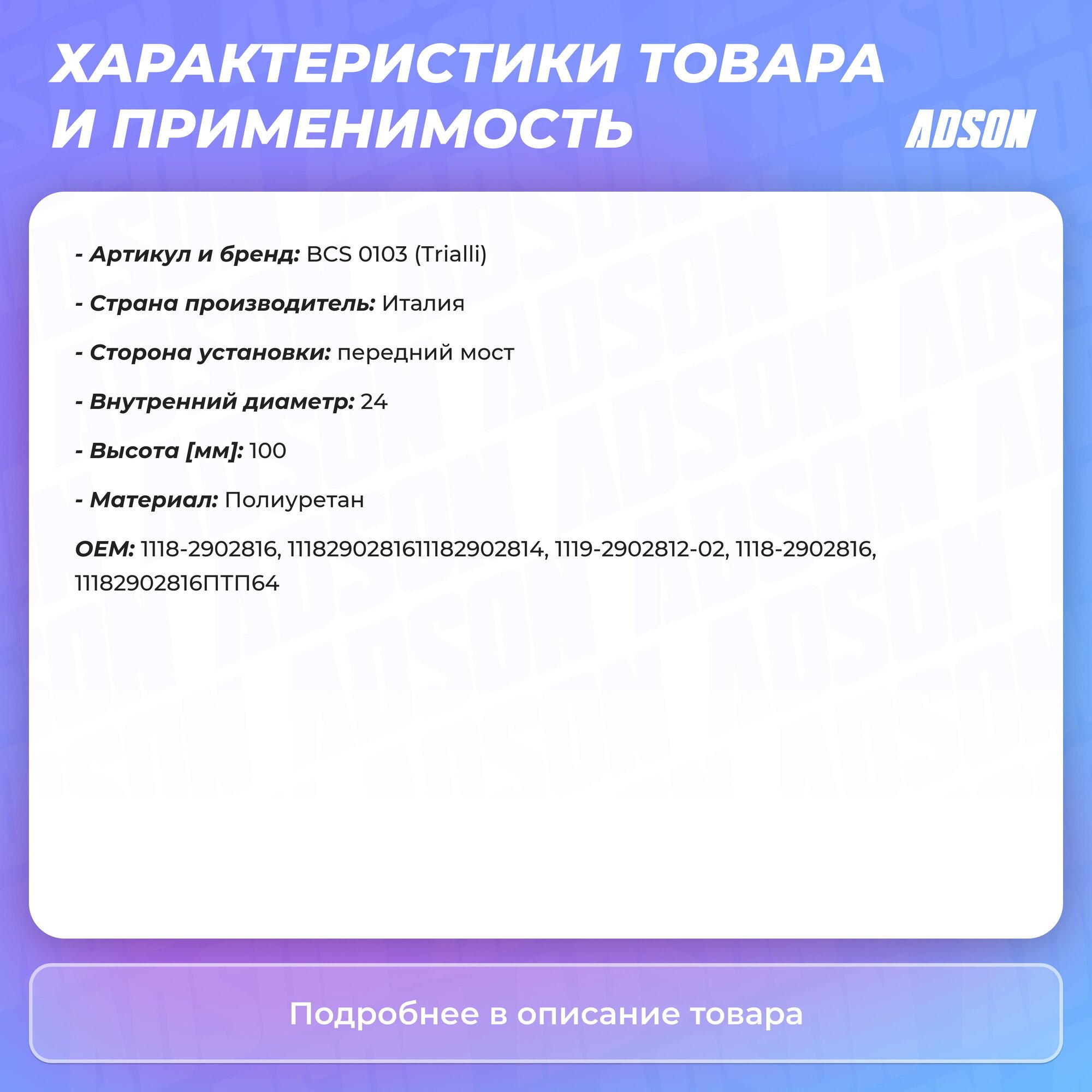 TRIALLI bcs-0103 (11190290281200 / 11190290281201 / 11192902812) буфер (отбойник) для а / м лада 1119 kalina (перед. стойки