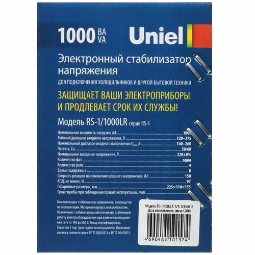 Uniel Стабилизатор напряжения для холодильника (UL-00003601) Uniel 1000ВА RS-1/1000LR