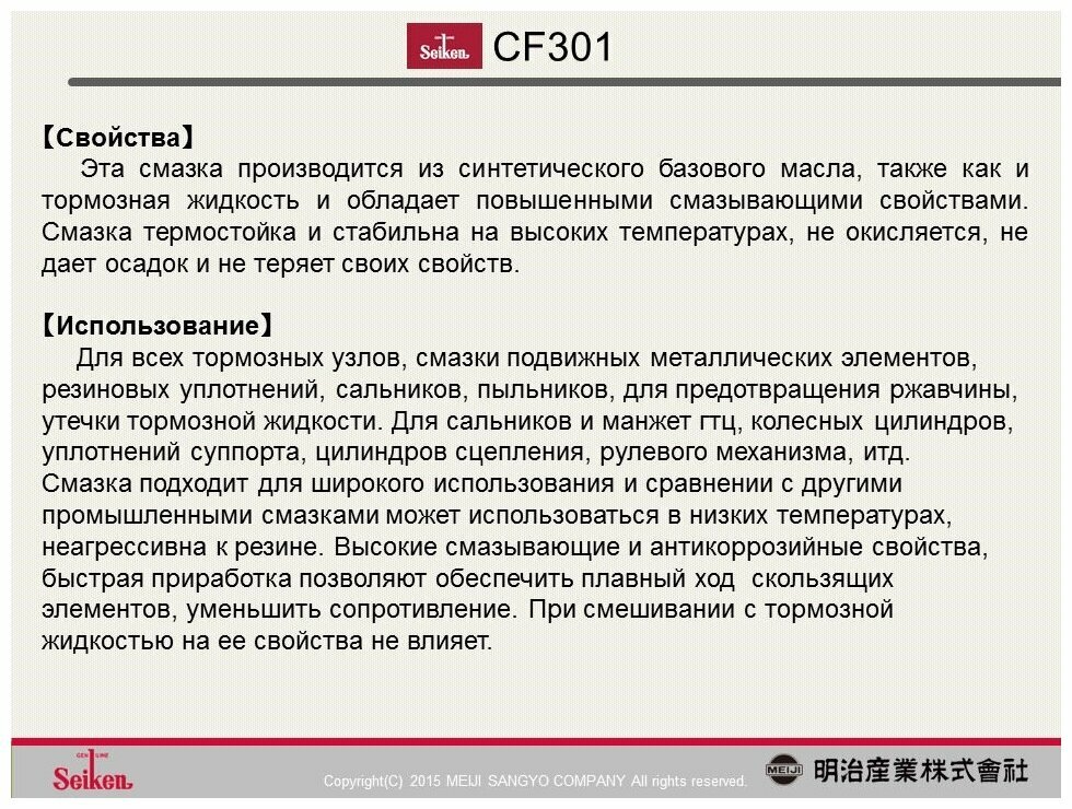 Смазка Для Суппортов И Направляющих Seiken 100Гр SEIKEN арт. CF301 интересное: