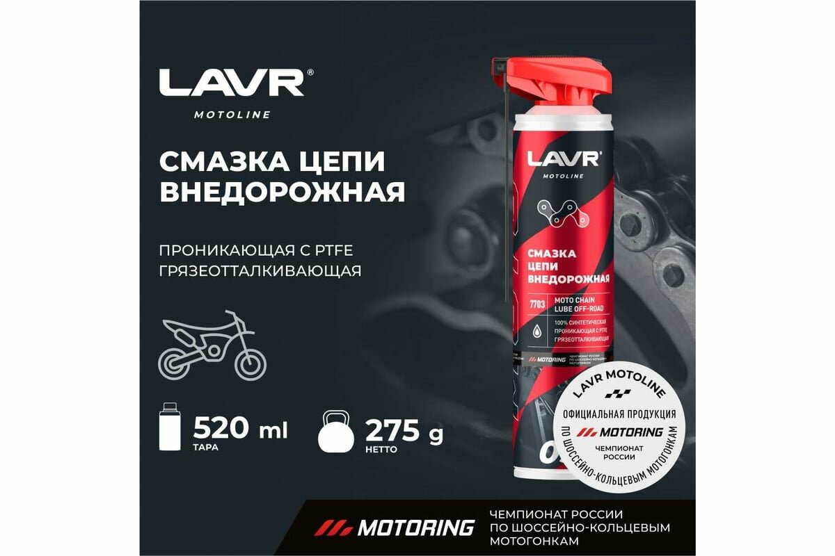 LAVR LN7703 смазка цепи мотоцикла! Внедорожная аэрозоль 520 мл\
